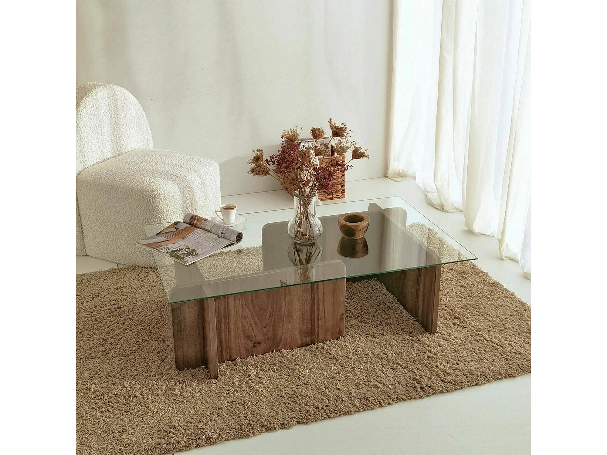 Dfontola-safeltafel, Koffietafel, Softbladhouder voor bank, Slankblad, 105x65h40 cm, Walnoot