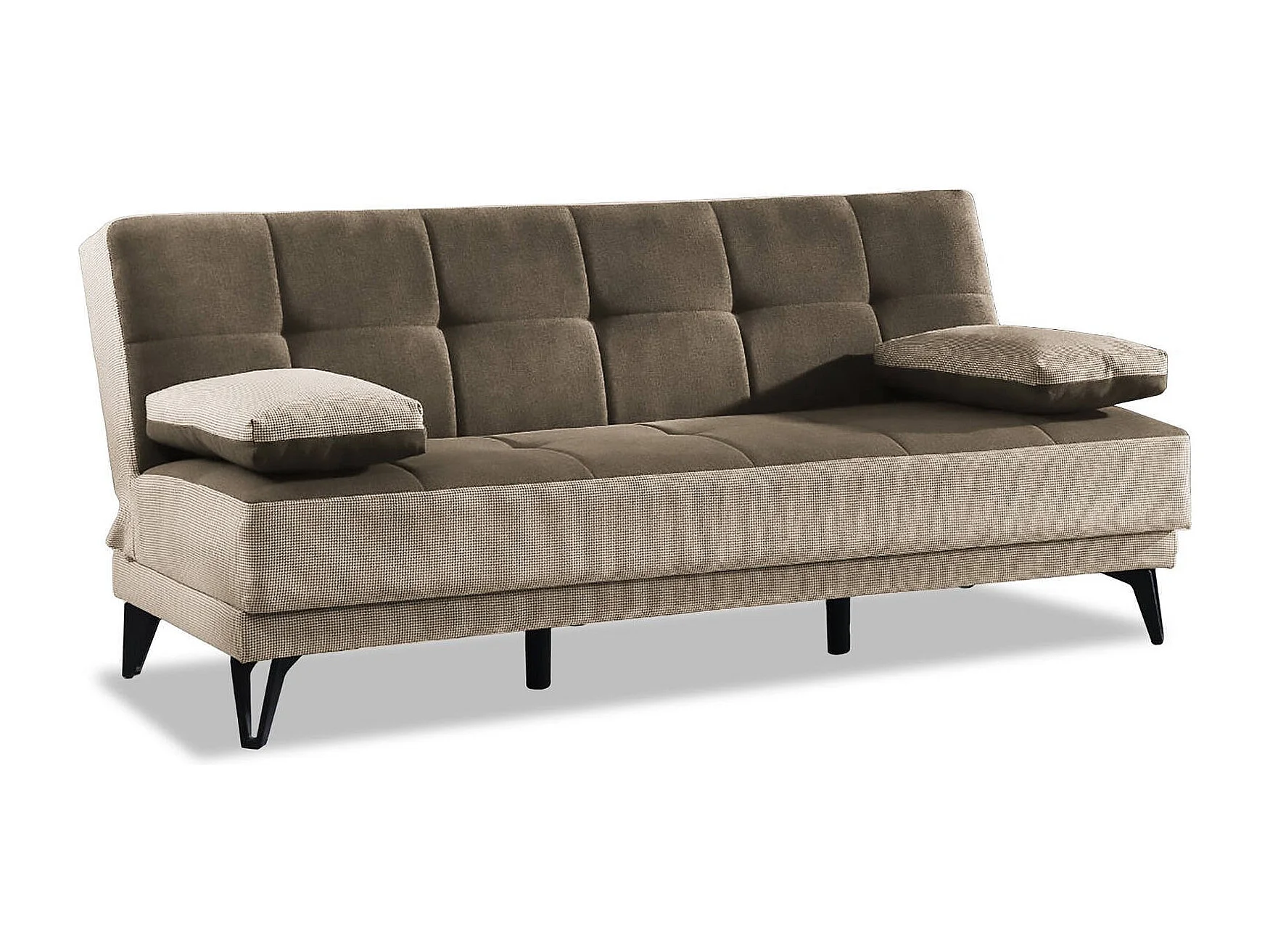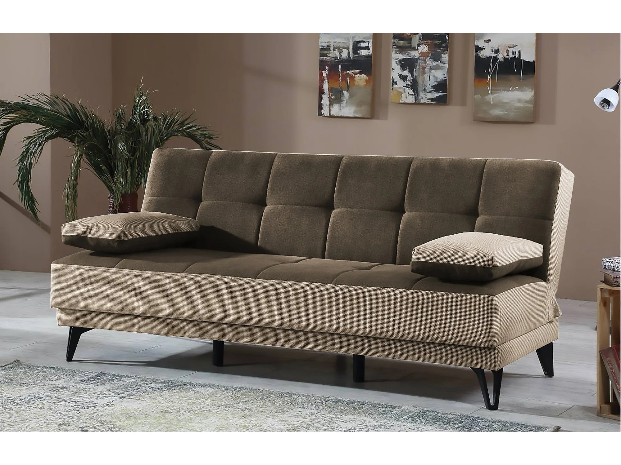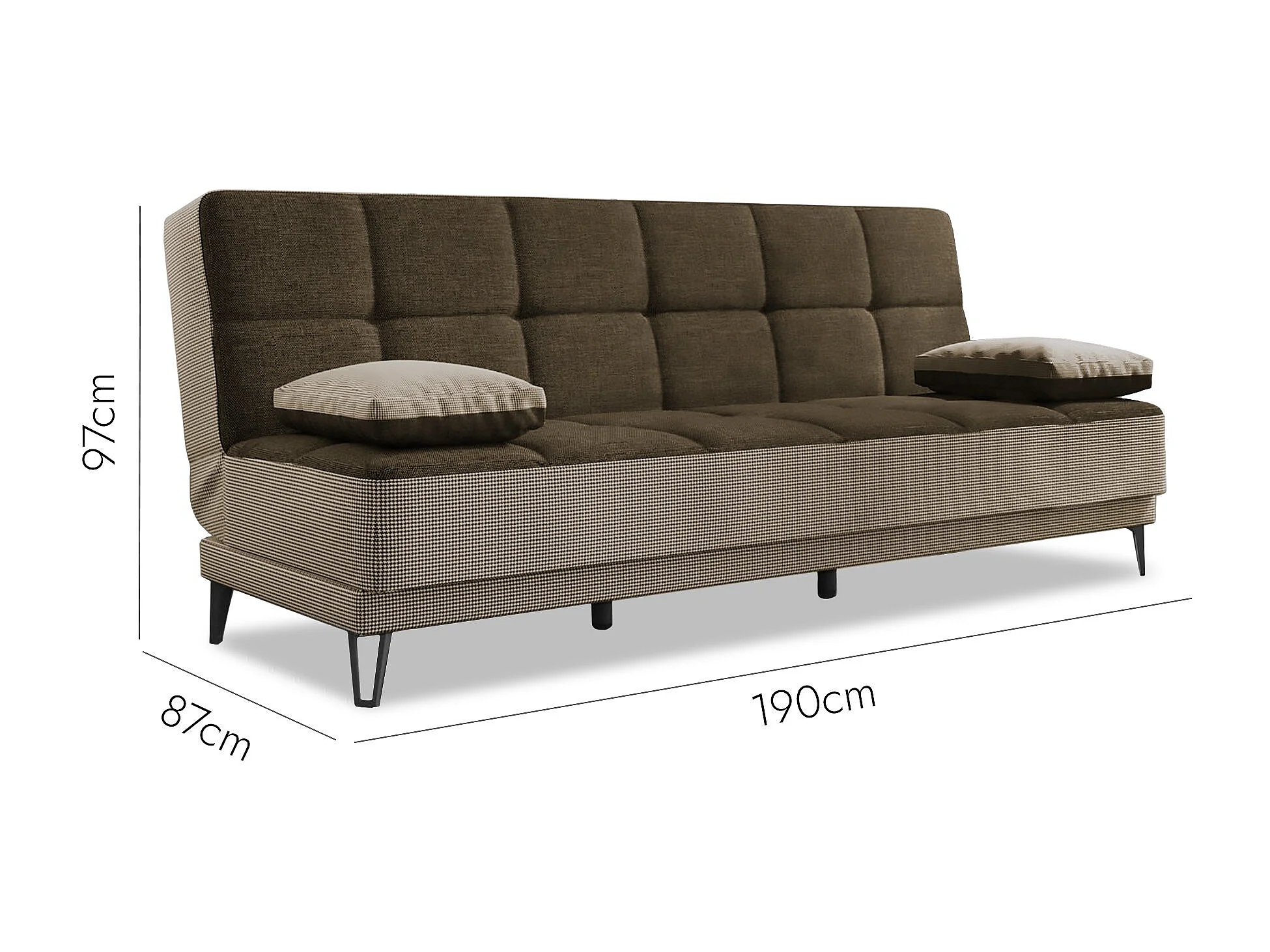 Dfortin slaapbank, 3-zits slaapbank met zwart metalen poten, Woonkamerbank in gestoffeerde stof met klik-klakopening, 190x87h97 cm, Grijs en Bruin