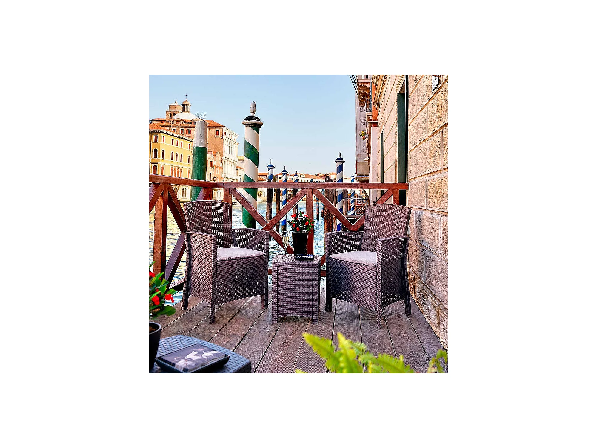 Dfre loungeset voor buiten, Tuinset met kussens, Loungeset voor binnen en buiten met rotaneffect, 100% Made in Italy, Bruin