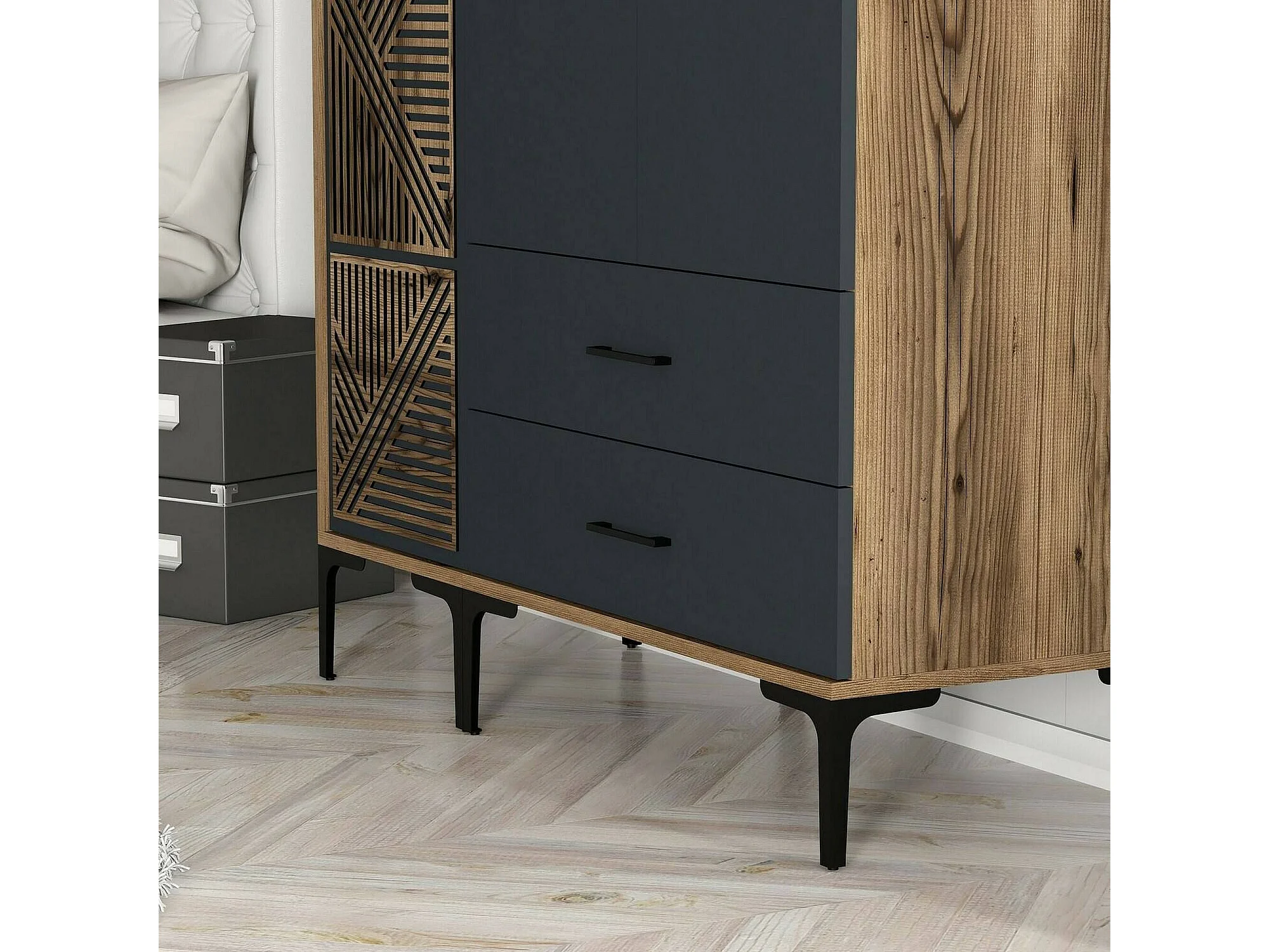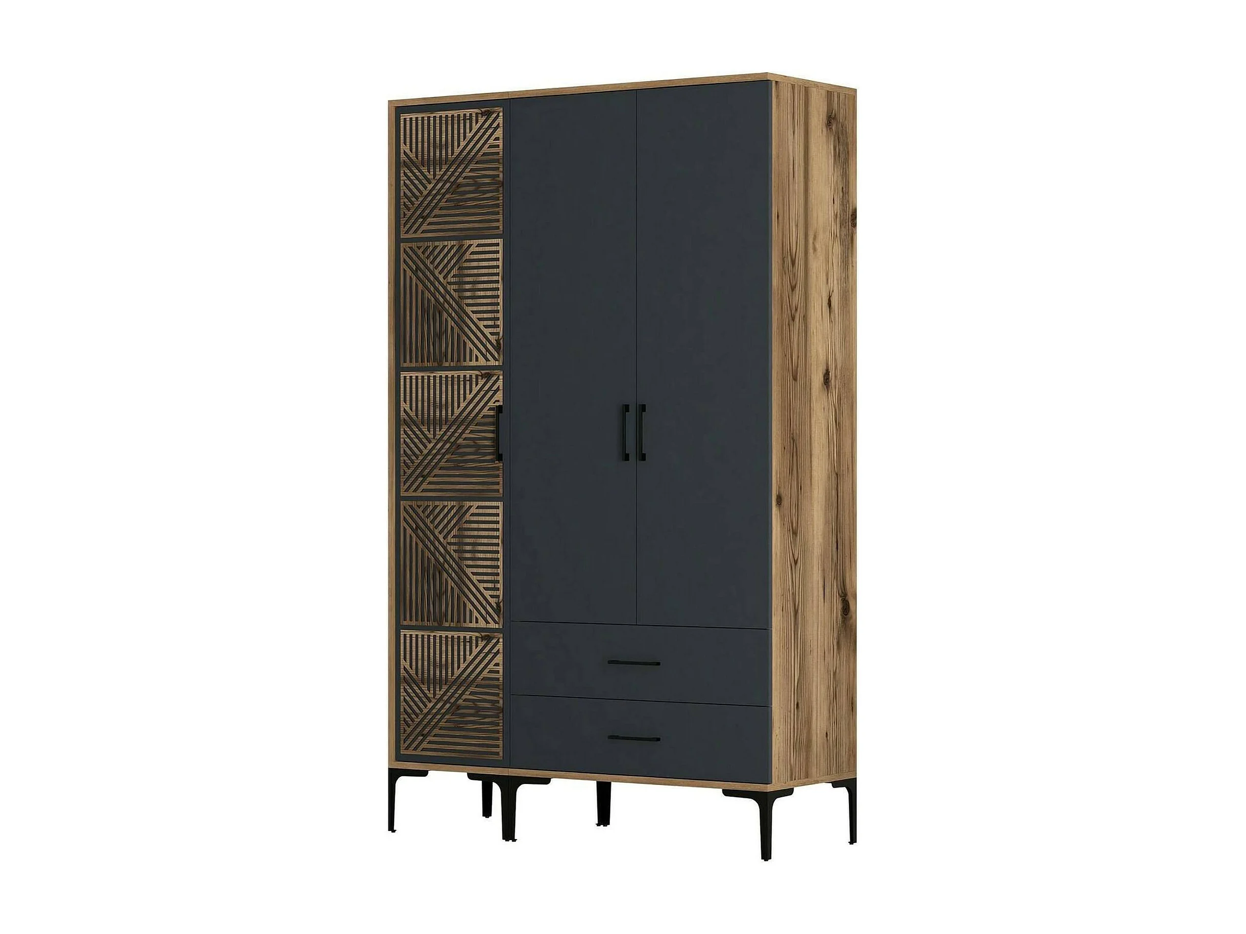 Dgalbiat 3-deurskast, Slaapkamermeubel, Inloopkast, Kledingkast, 120x48h201 cm, Walnoot en Antraciet
