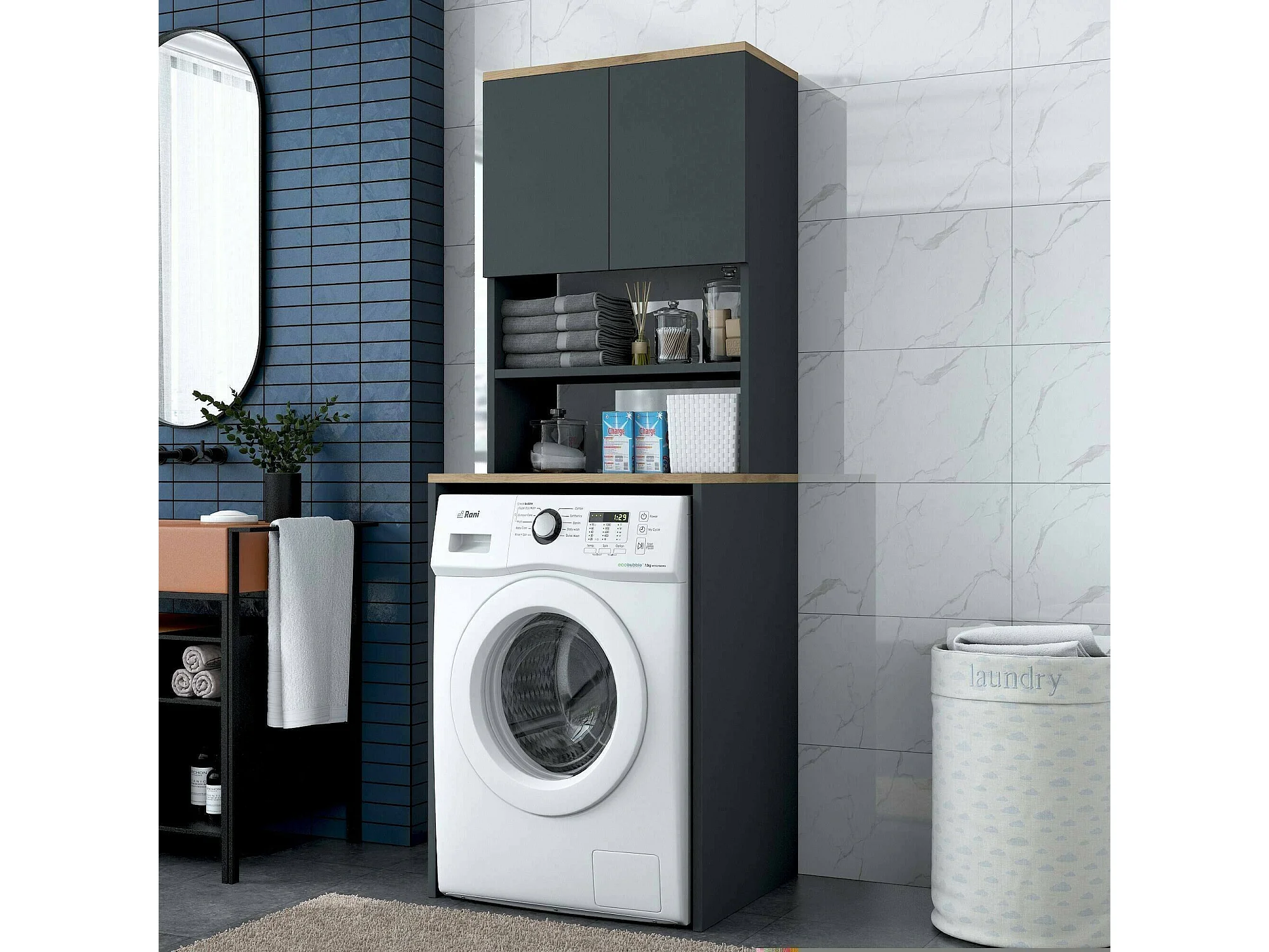 Dgarofal multifunctionele kledingkast 2 deuren, Multifunctionele kast, Schoenenkast, Schoenenkast, 65x60h184 cm, Walnoot en Antraciet