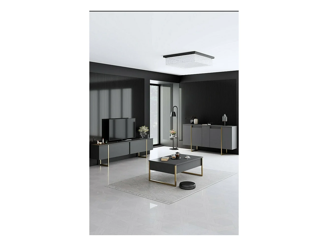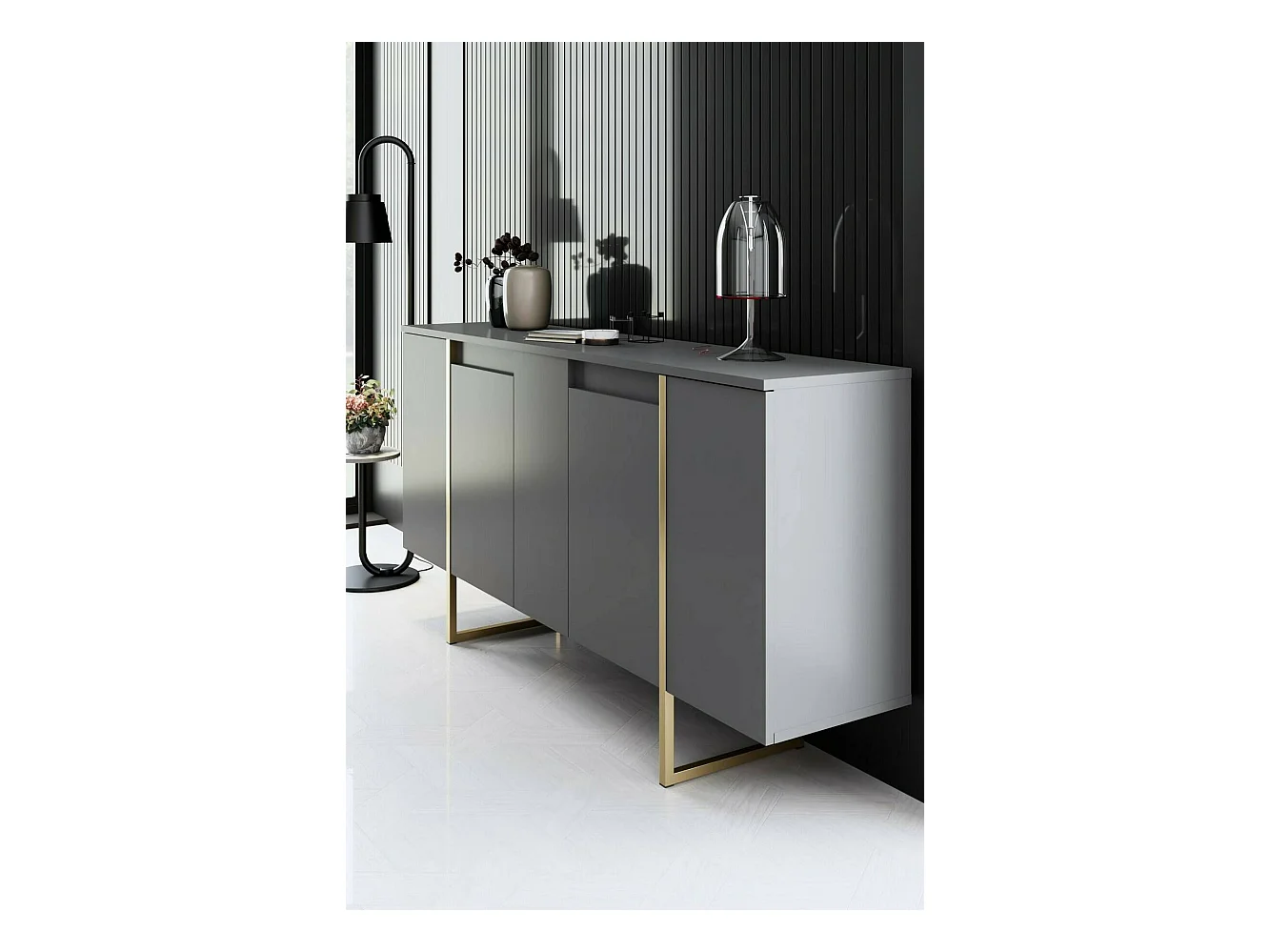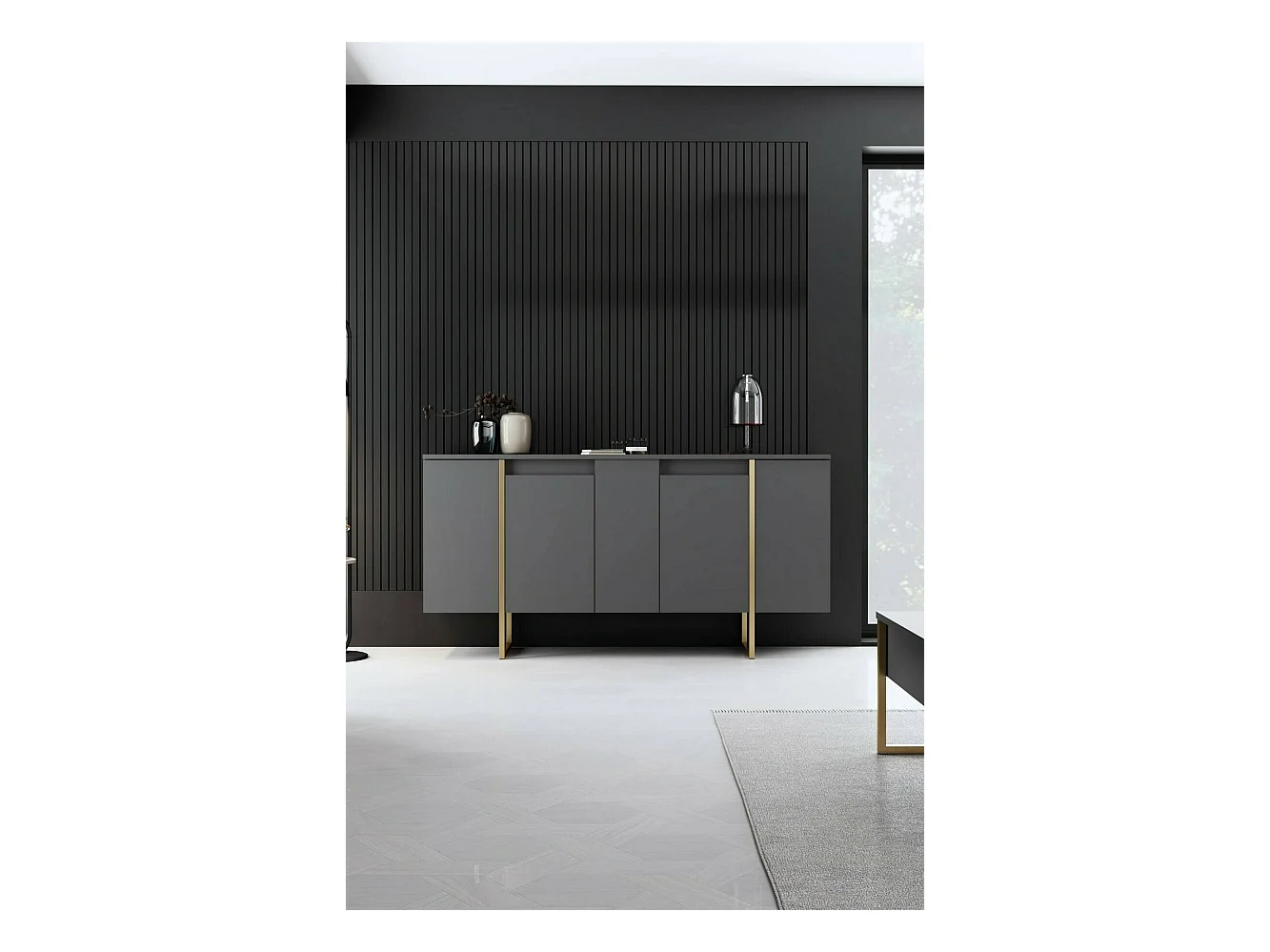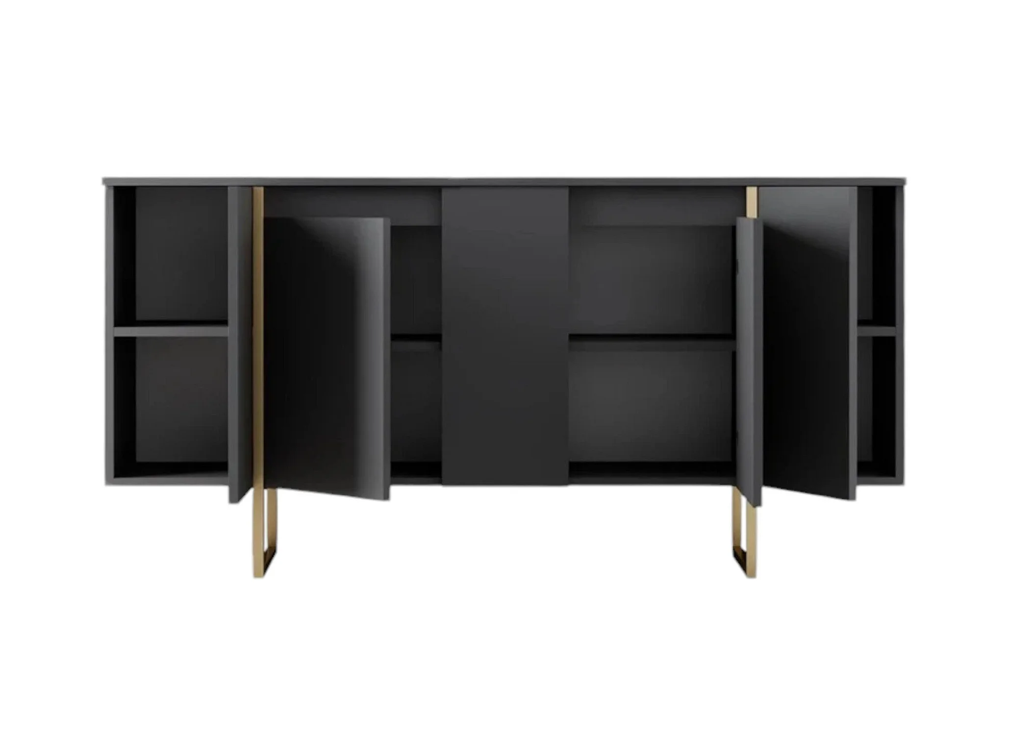 Dressoir Ddambrosi, Buffet in de woonkamer, Moderne woonkamer met 4 deuren, 200x44h86 cm, Antraciet