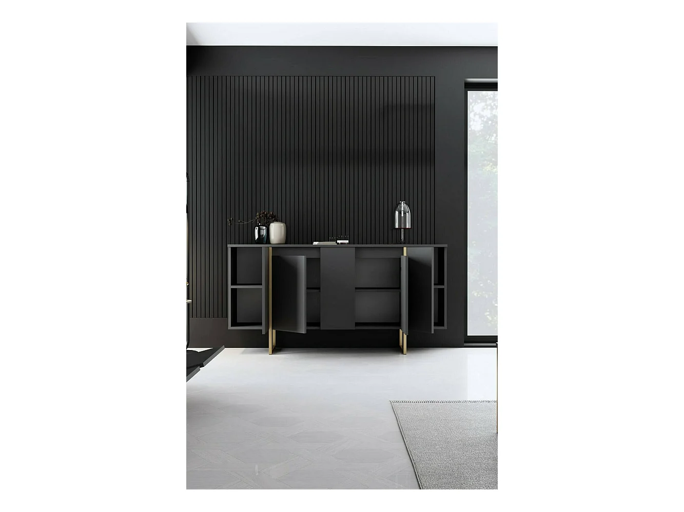 Dpa dressoirZzagl, Woonkamerbuffet, Woonkamer, Keukenkast, 180x47h76 cm, Zwart en Goud