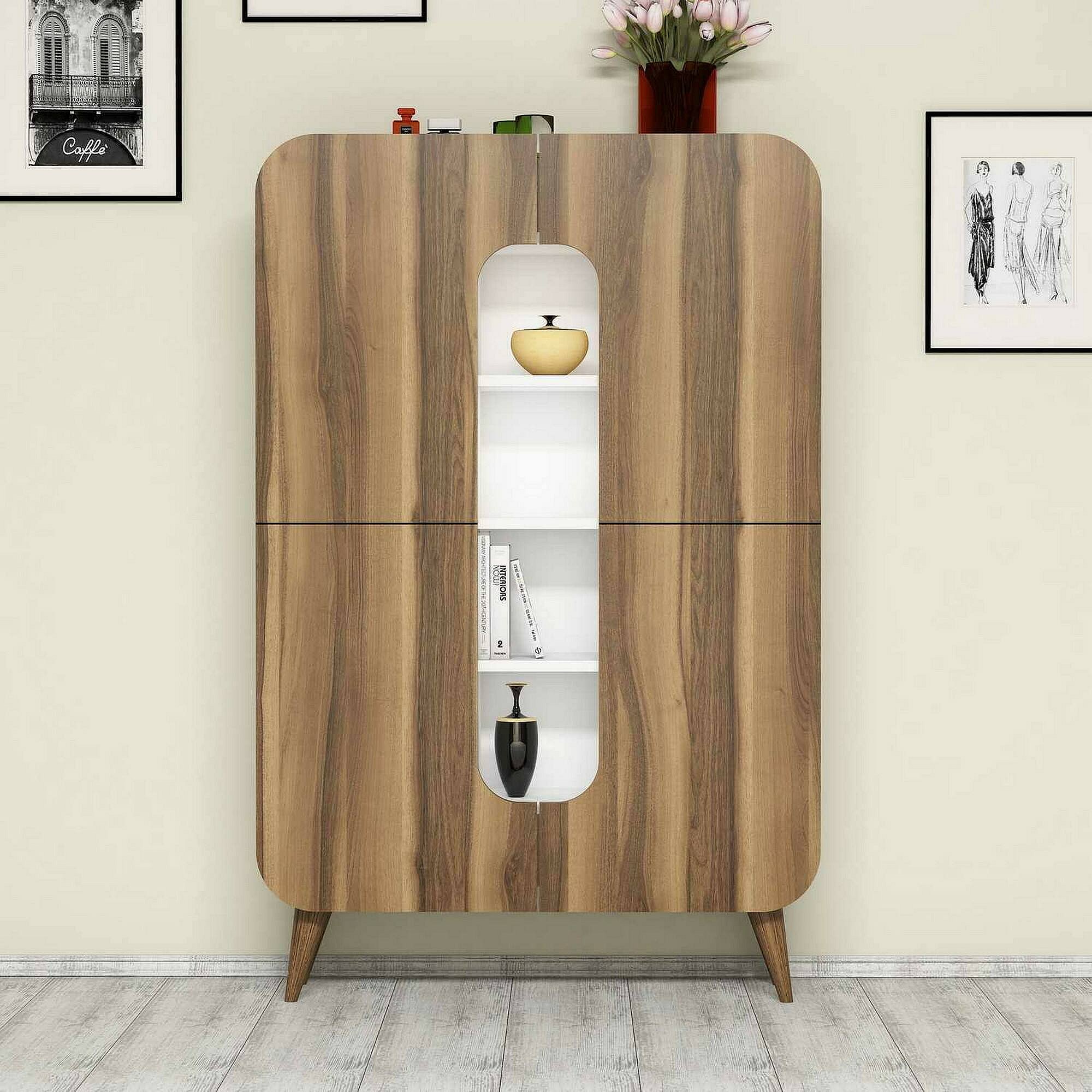 Dgaudenz-kast, woonkamerbuffet, woonkamermadia,Keukenplank, 93x32h144 cm, walnoot en wit