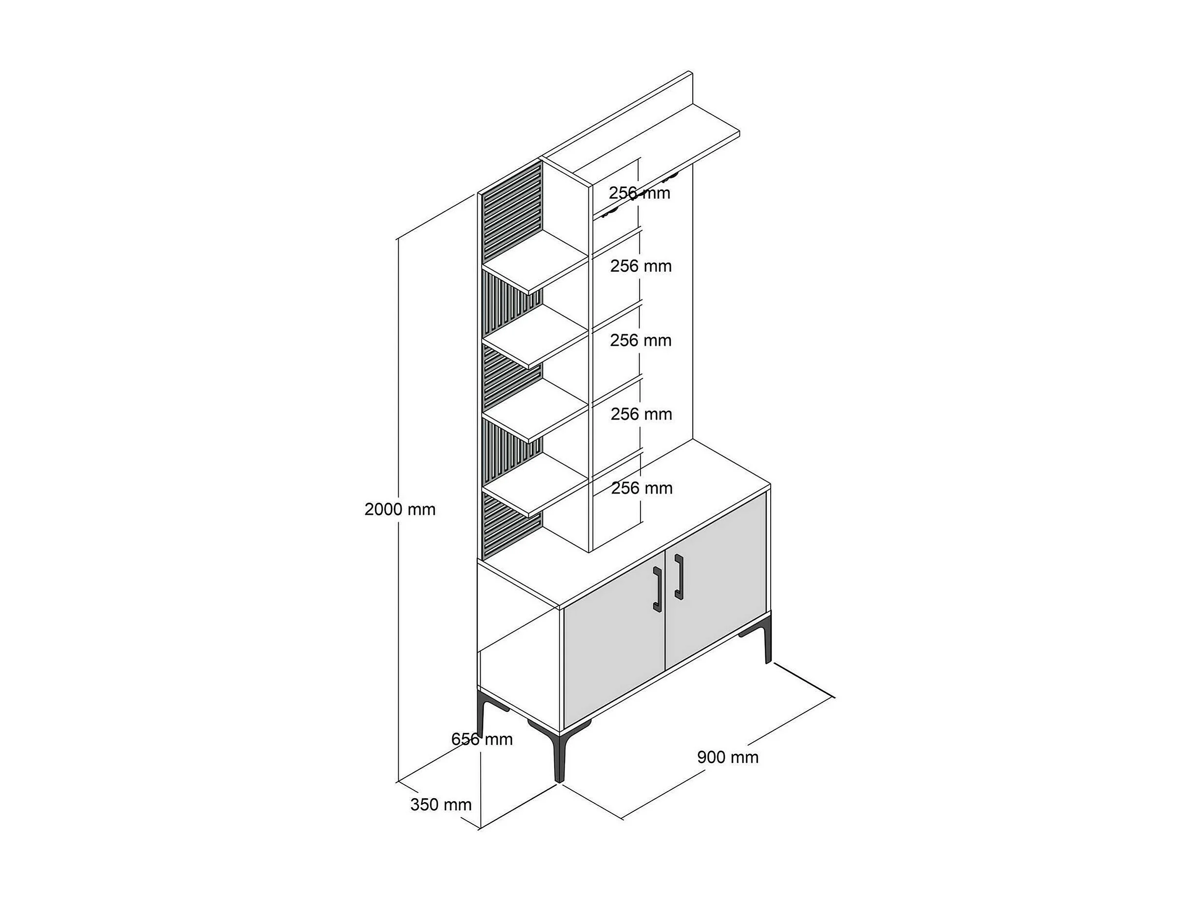 Dghilard Entreemeubel, Inkomhanger, SamenstellingVoor atrium, mpu's, 90x35h200 cm, walnoot en wit