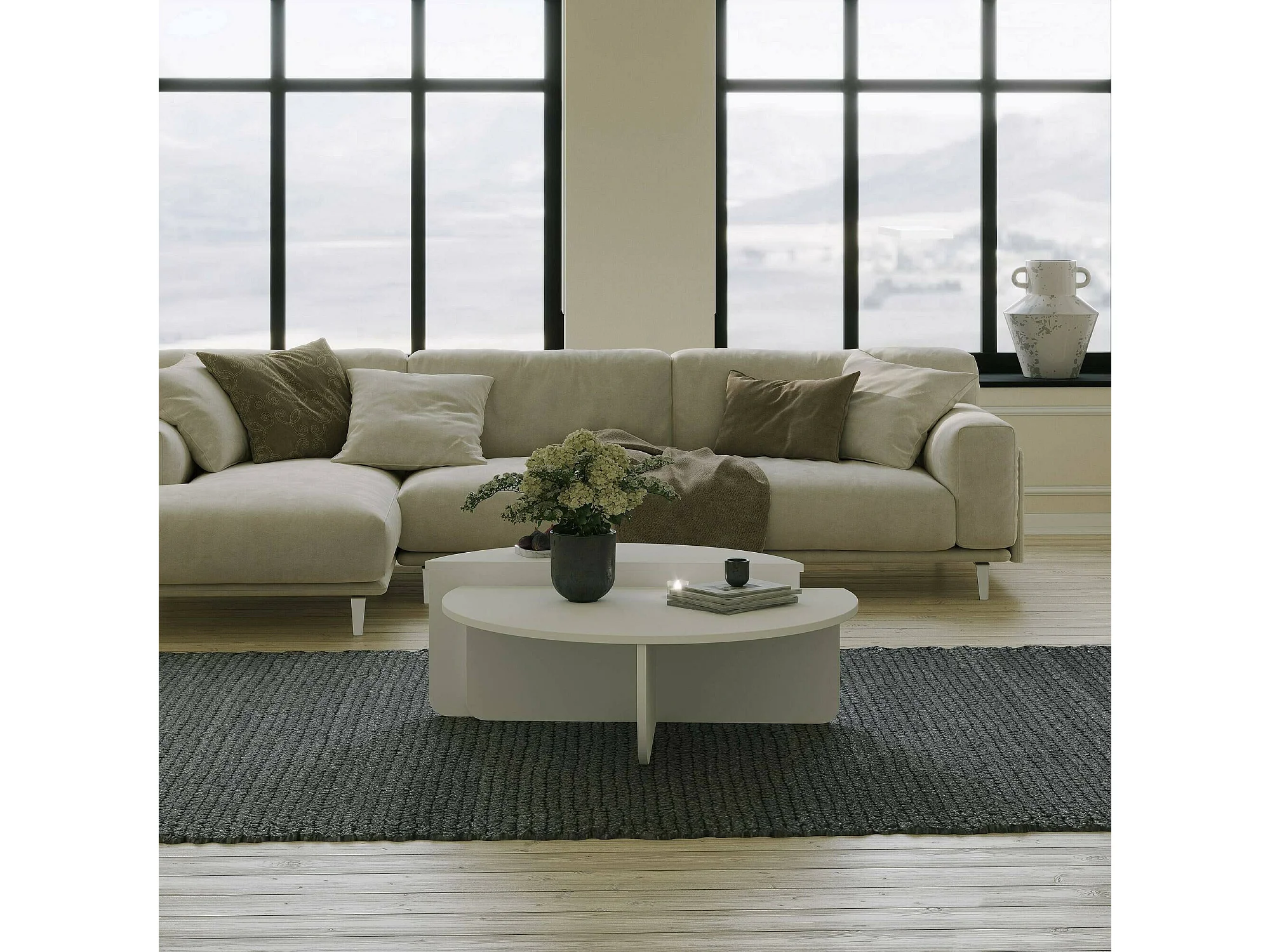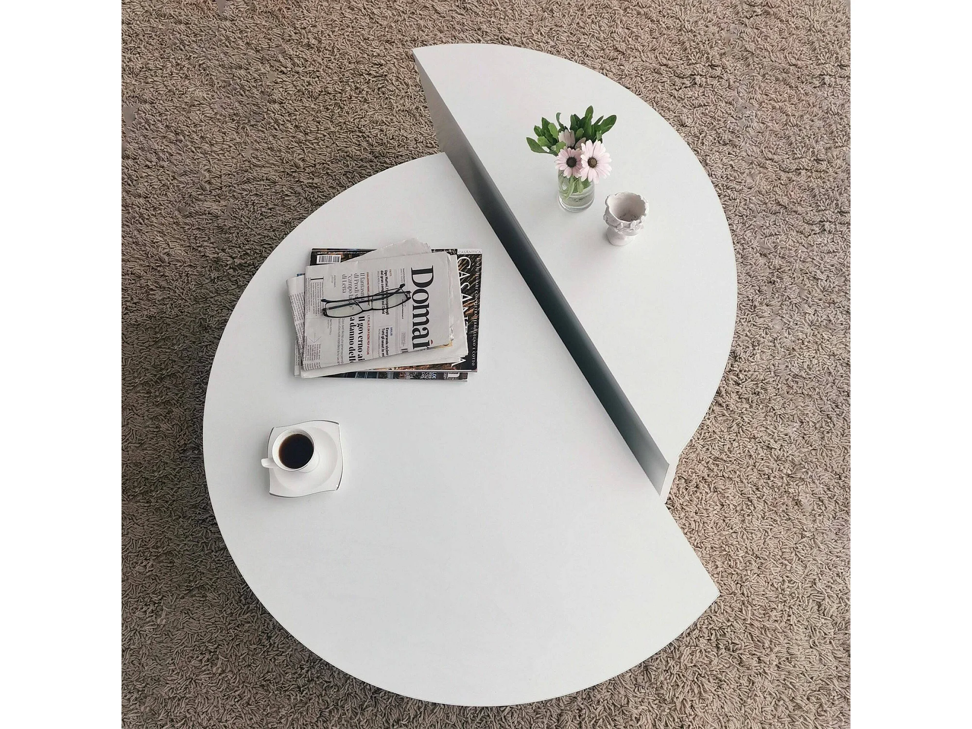 Dgiarett-saalontafel, koffietafel, bankrek, woonkamerplank, 90x90h35 cm, wit