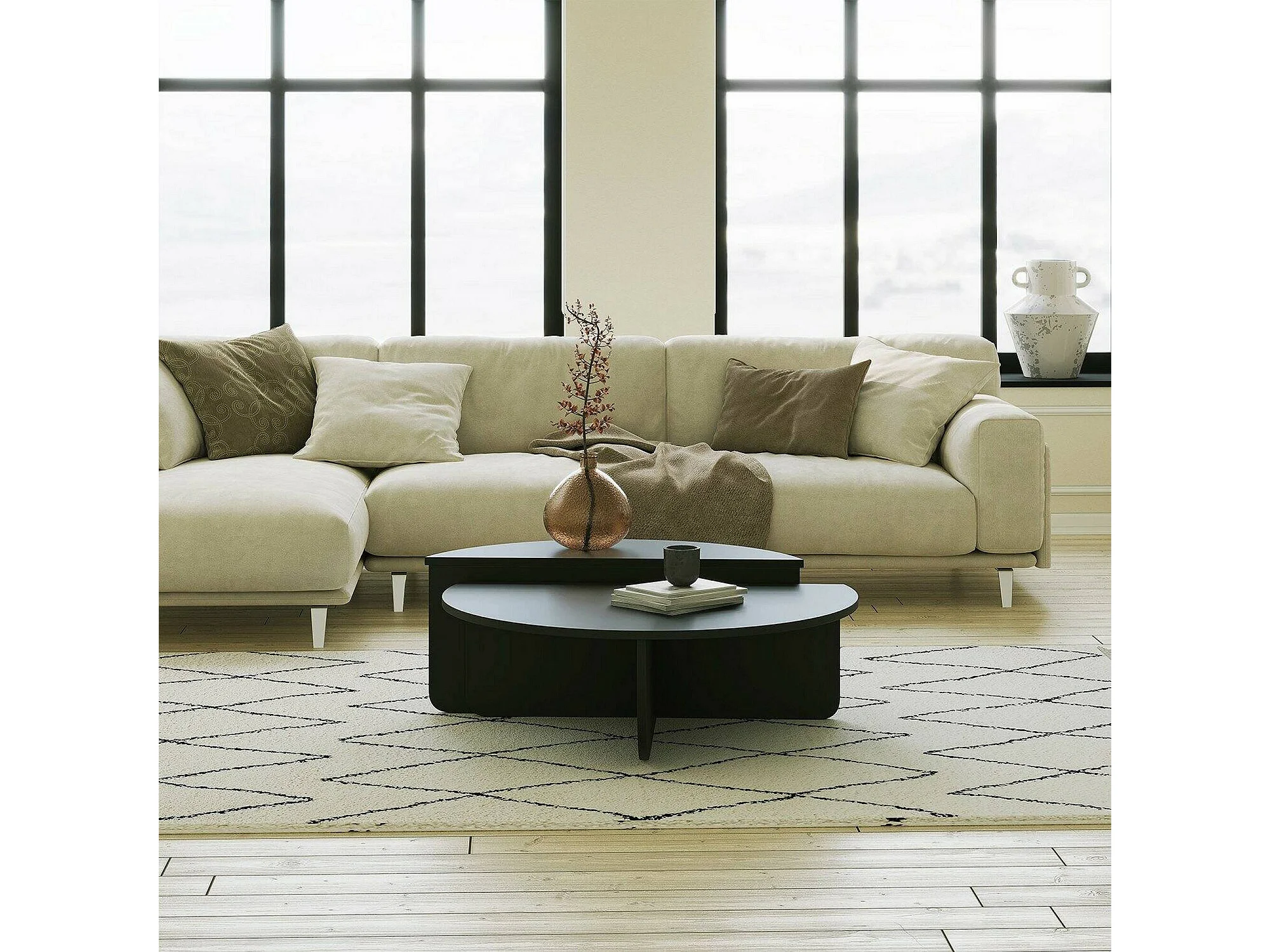 Dgiarett-saaltafel, koffietafel, bankrek, woonkamerplank, 90x90h35 cm, Zwart