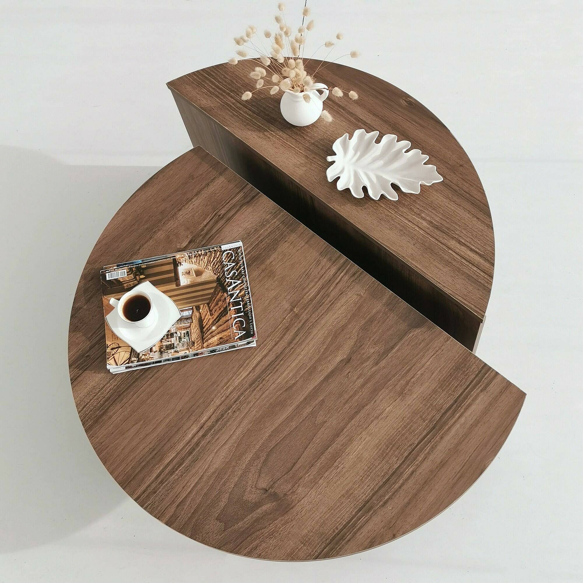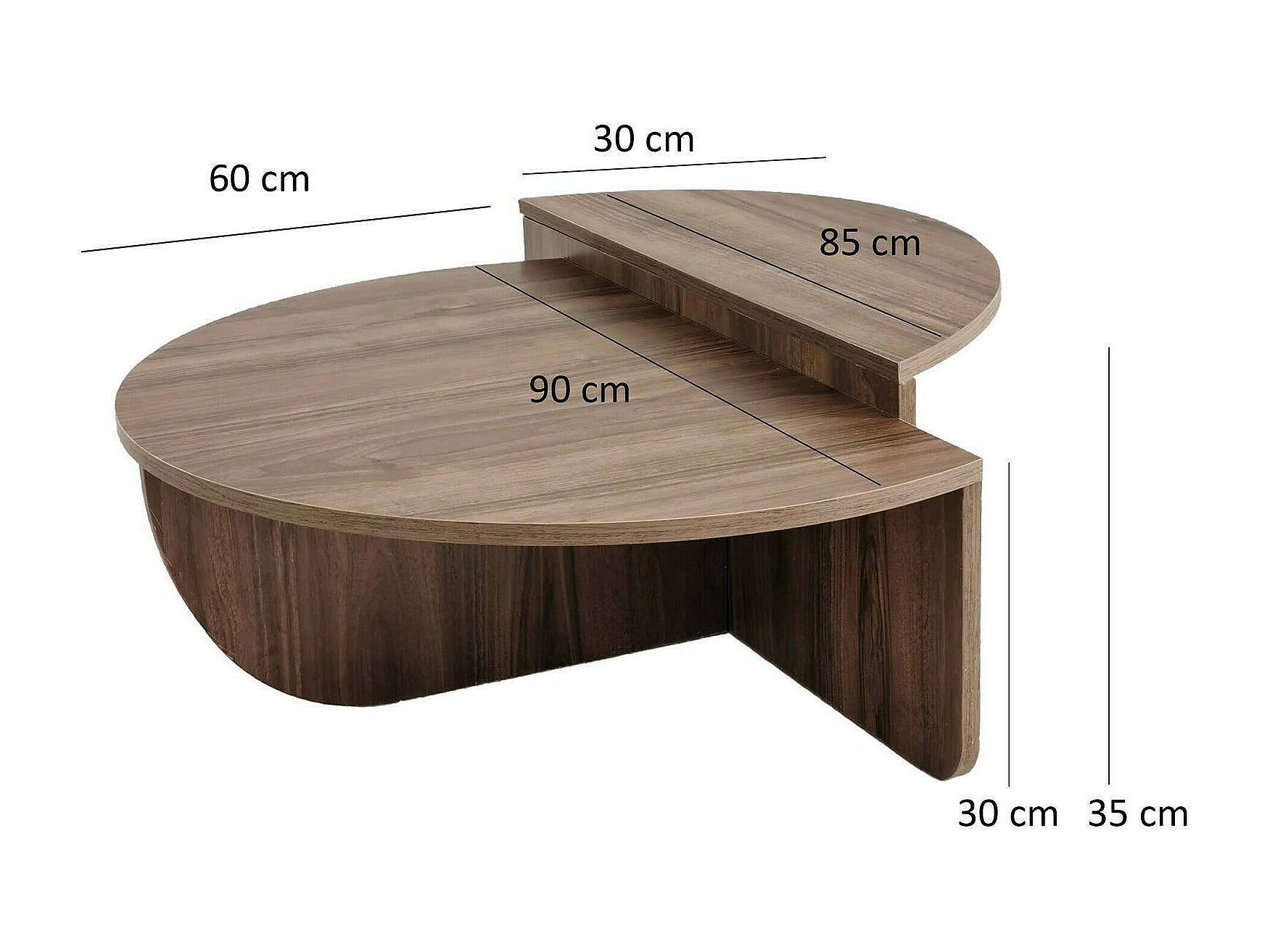 SaaltjeTto Dpere, Koffietafel, bankrek, woonkamerplank, 90x90h30 cm, Walnoot