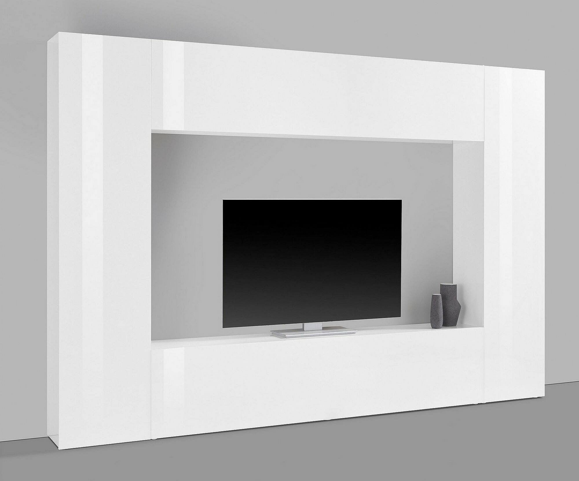 Ddurmis wandsysteem, 3-deurs TV-meubel woonkamerset, Multifunctioneel woonkamermeubilair, 100% Made in Italy, 260x30h180 cm, Glanzend wit