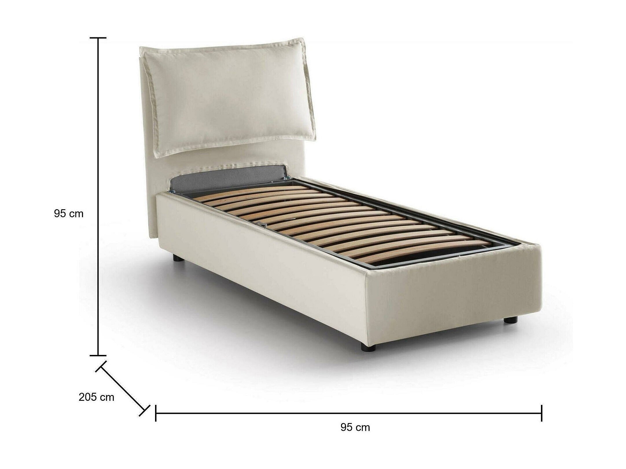 Dapuzz eenpersoonsbed, Opbergbed met stoffen bekleding, 100% Made in Italy, Opening aan de voorkant, geschikt voor matras 80x190 cm, Beige