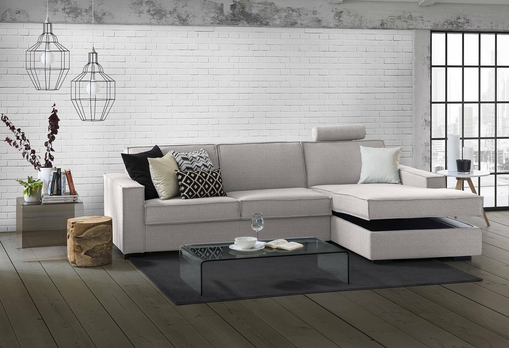Divano fisso con penisola in tessuto tortora 260x95h90 cm
