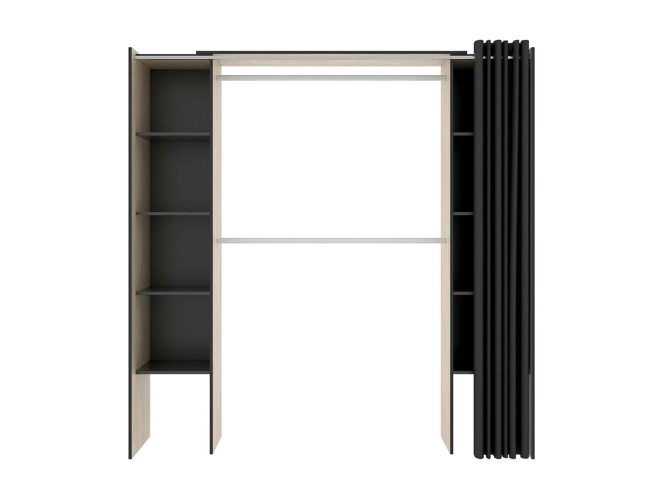 Dgond kledingkast, Structuur voor inloopkast, Uitschuifbare open kleerhanger, 180x50h205 cm, Eiken en Grijs