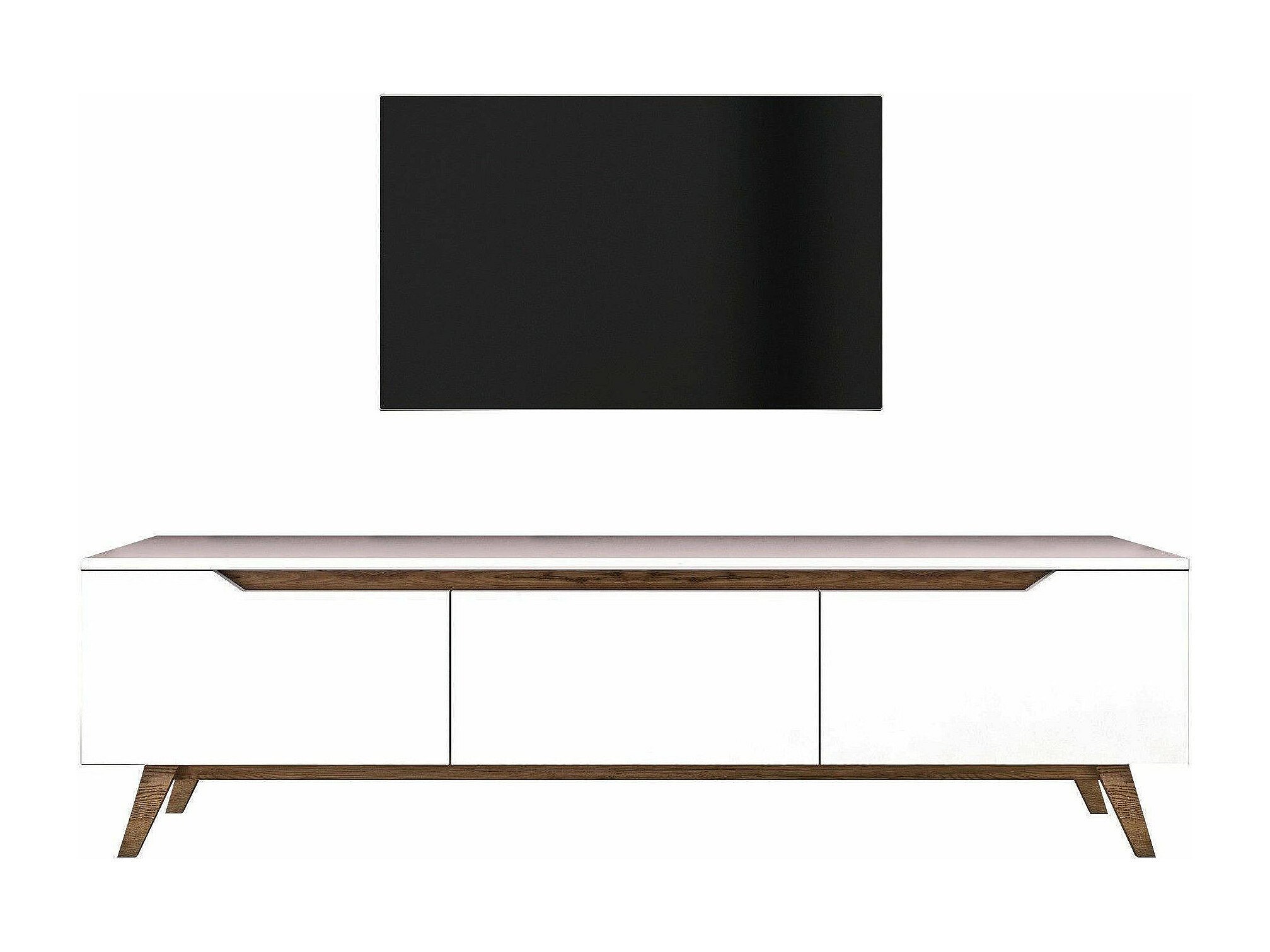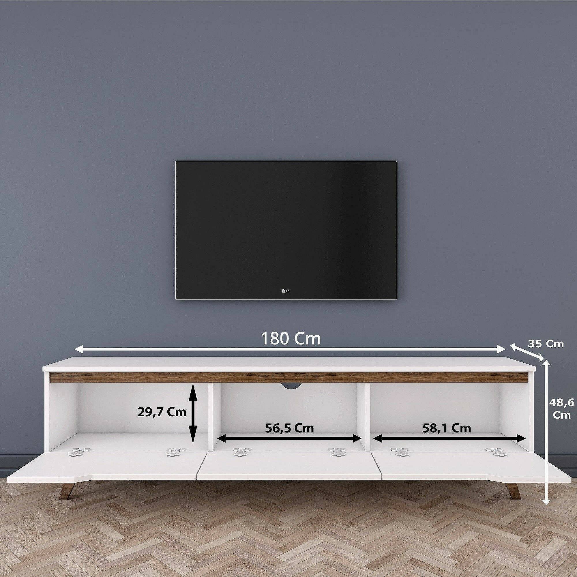 Dguidoli tv-standaard, woonkamermeubel, lage tv-meubel, wandstandaard, 180x35h49 cm, wit en walnoot