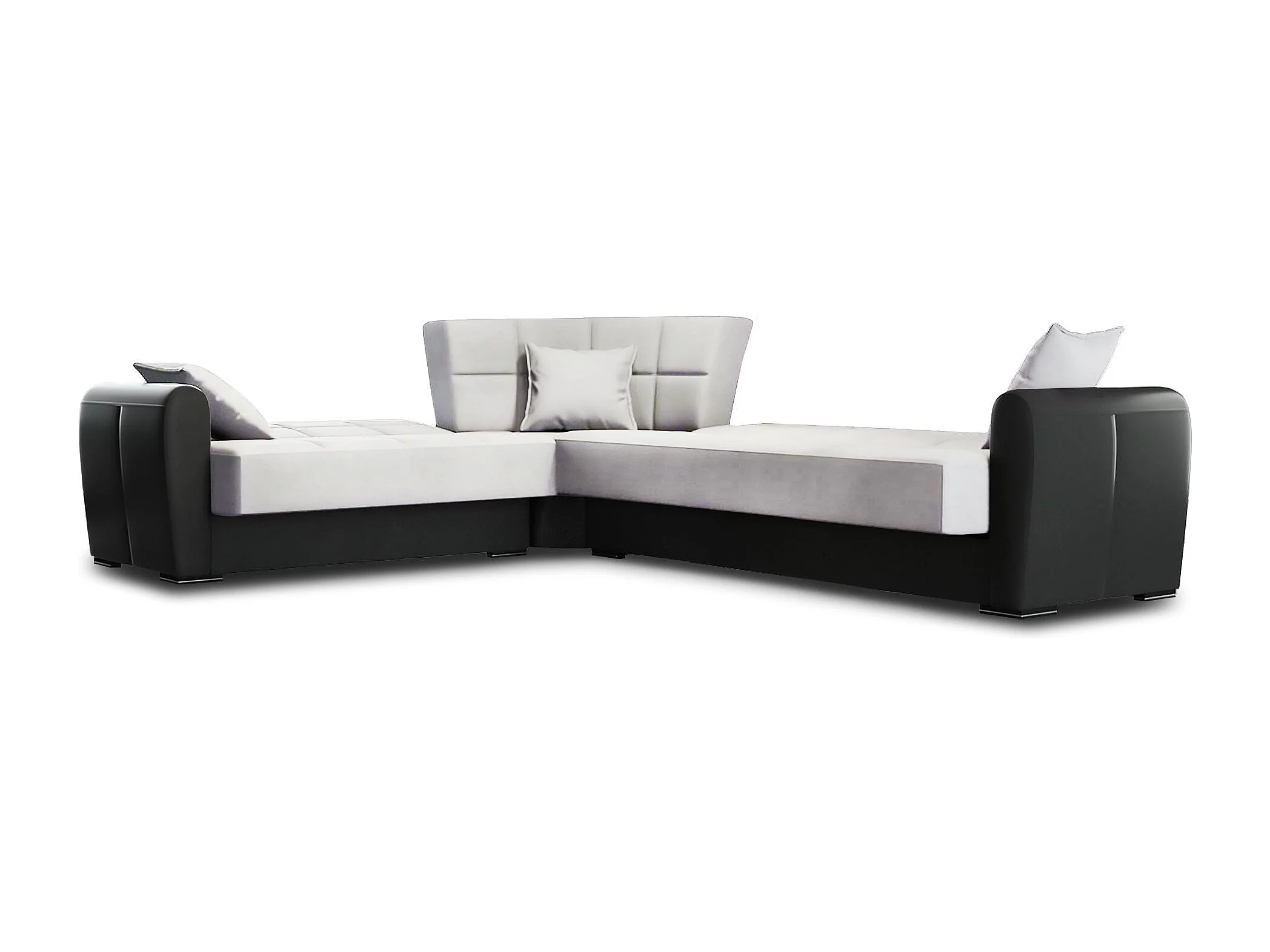 Dgytkjæ slaapbank, hoekslaapbank in eco-leer en stof, woonkamerbank met klik-klakopening en omkeerbaar schiereiland, 305x238h91 cm, zwart en lichtgrijs