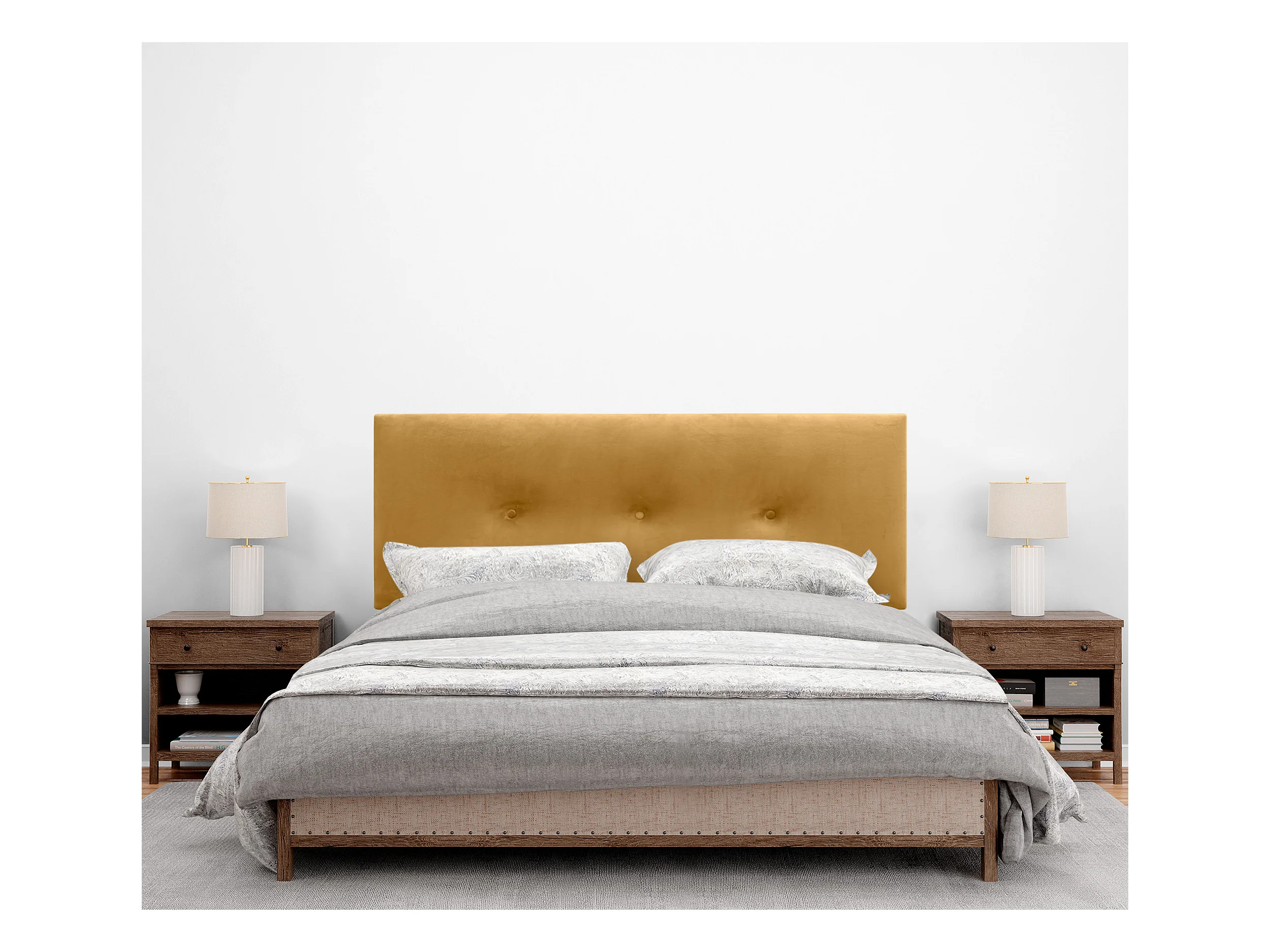 DHOME Glad fluwelen hoofdeinde met knopen 160x60 bedden 150/160 - Mosterd