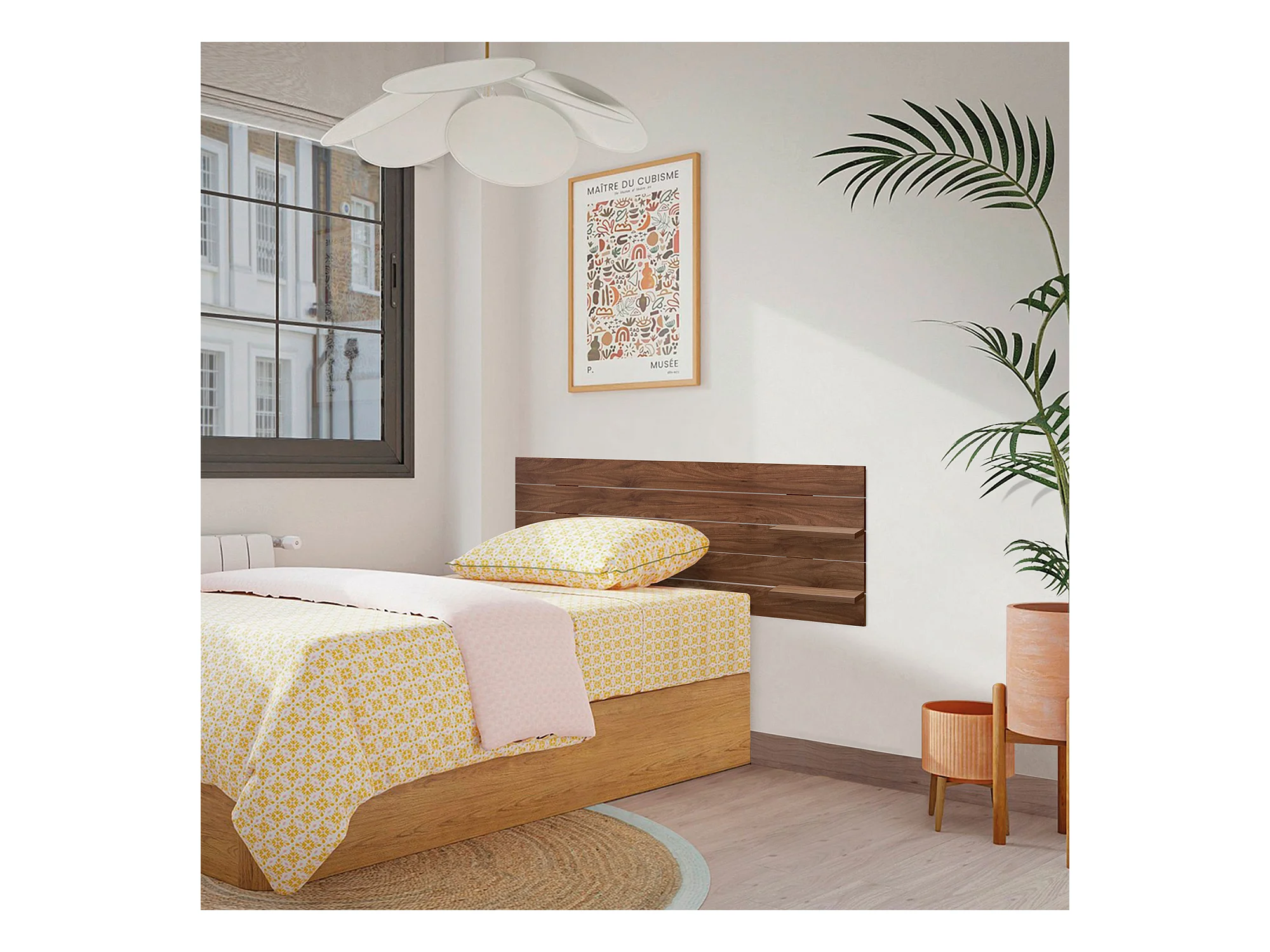 DHOME Hoofdeinde van gerecycled hout Dm Japanse stijl met poten 145x115cm Bedden 145 - Walnoothout