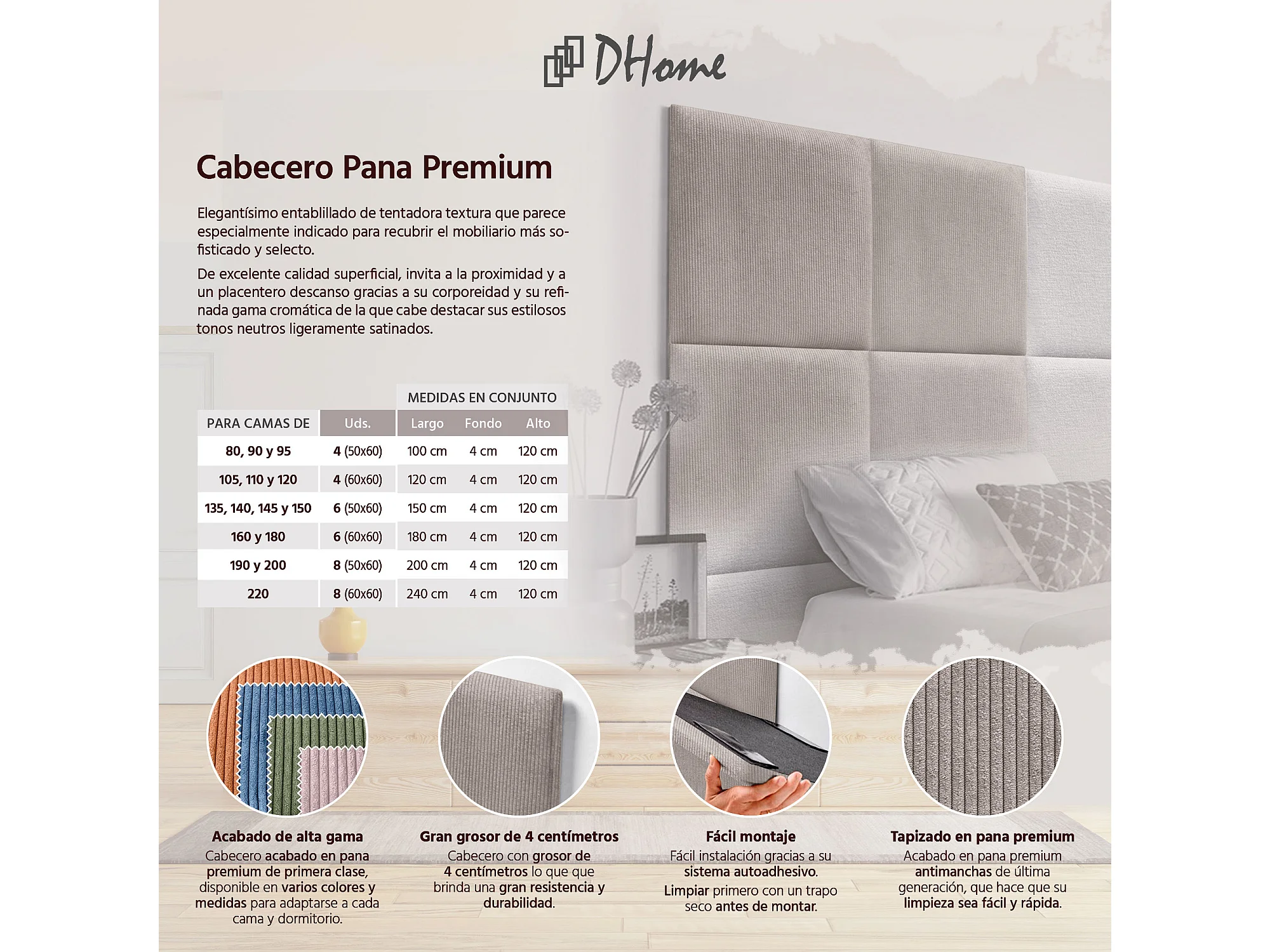 DHOME Premium Corduroy gestoffeerd hoofdeinde samengesteld uit verwisselbare zelfklevende panelen Luxe slaapkamer opgevuld (bruin,95cm)