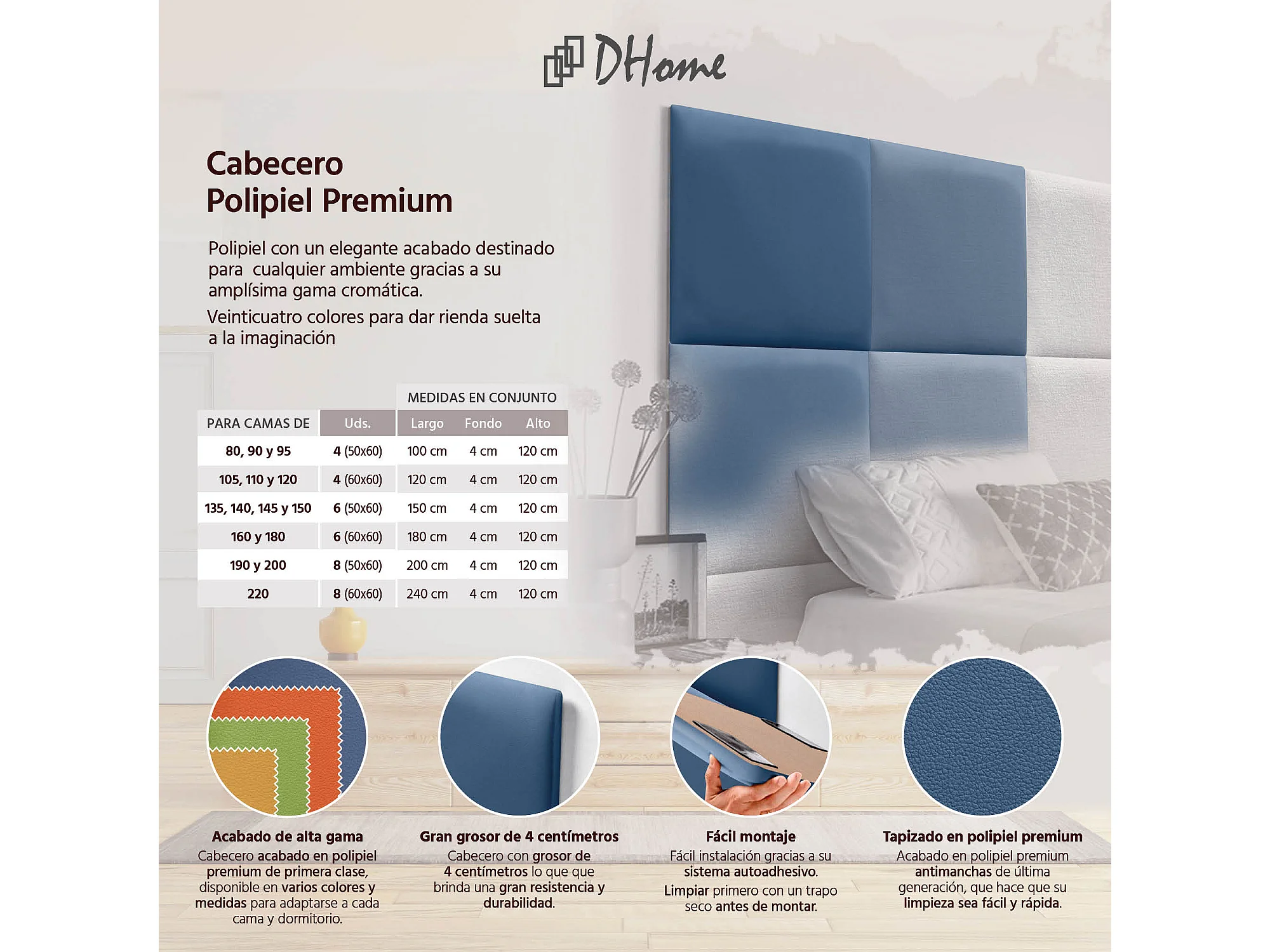DHOME Premium Kunstlederen Hoofdbord Gemaakt van Verwisselbare Zelfklevende Panelen Luxe Gewatteerde Slaapkamer (Blauw, 180cm)