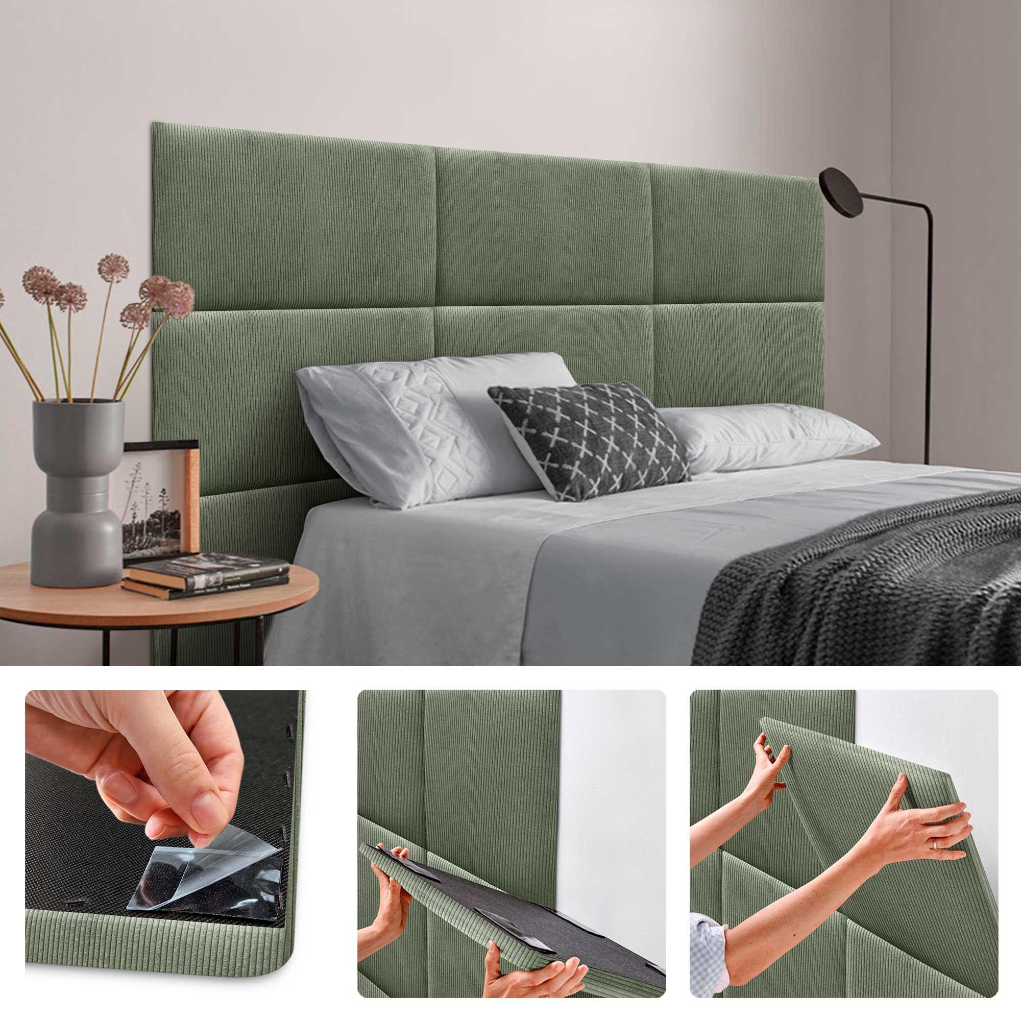 DHOME Gestoffeerd hoofdbord bestaande uit verwisselbare zelfklevende panelen Luxury Edition Serie Luxe bed Slaapkamer (Lineal Green, 180cm)