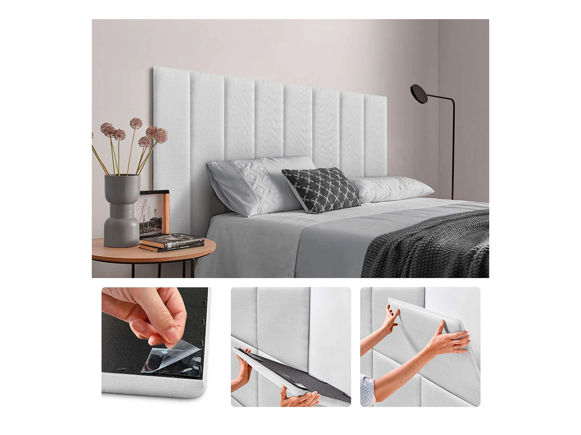 DHOME Set van 1 gestoffeerd linnen paneel – Zelfklevende wandpanelen, geluidsabsorberend, schokbescherming, hoofdbord (Wit, 60x20cm, x1)