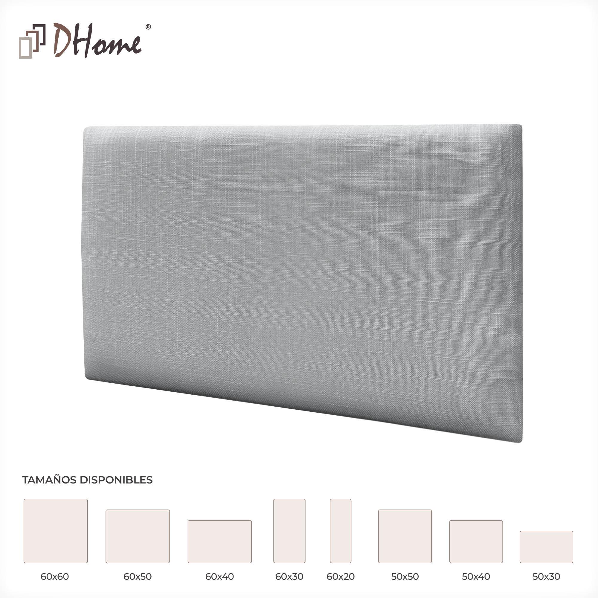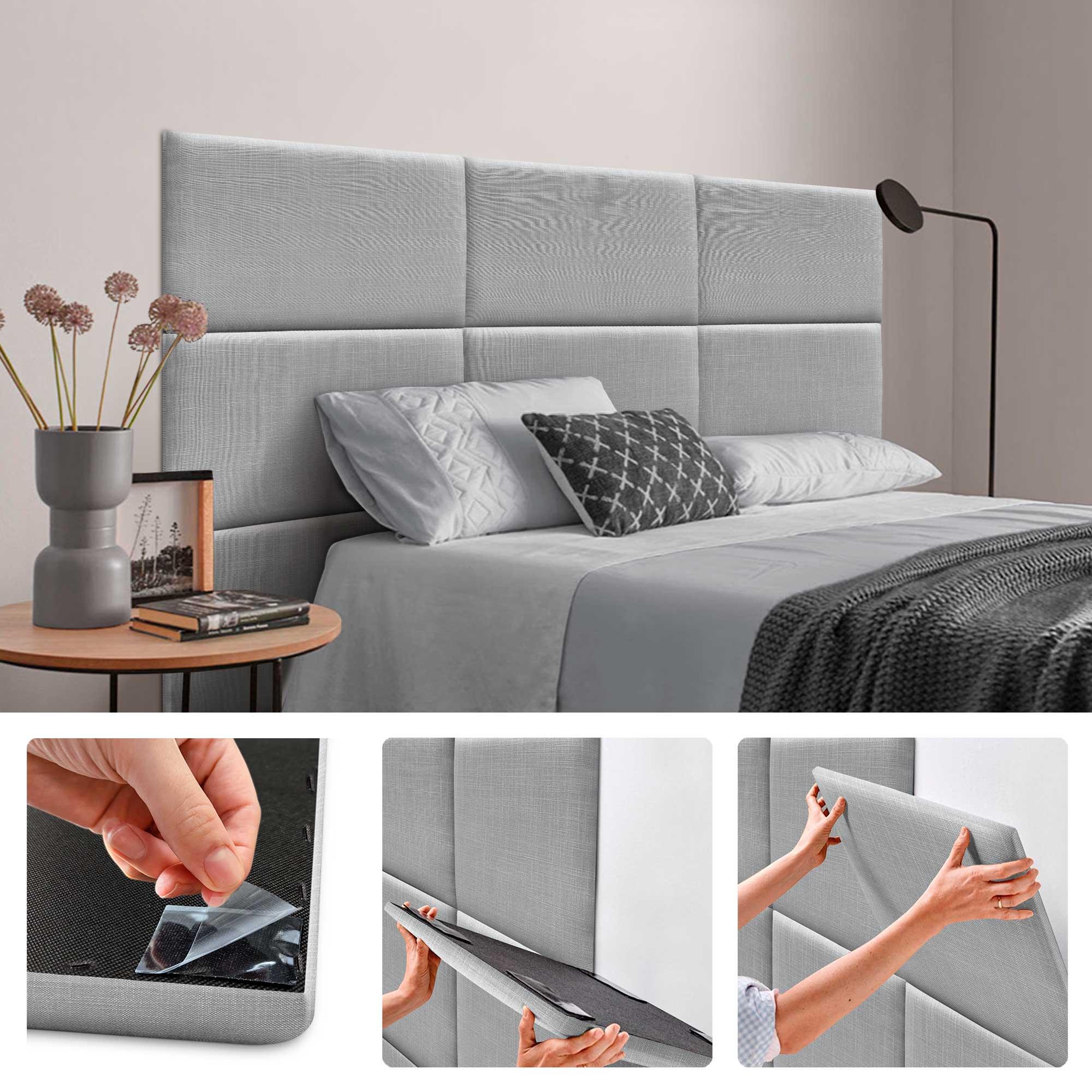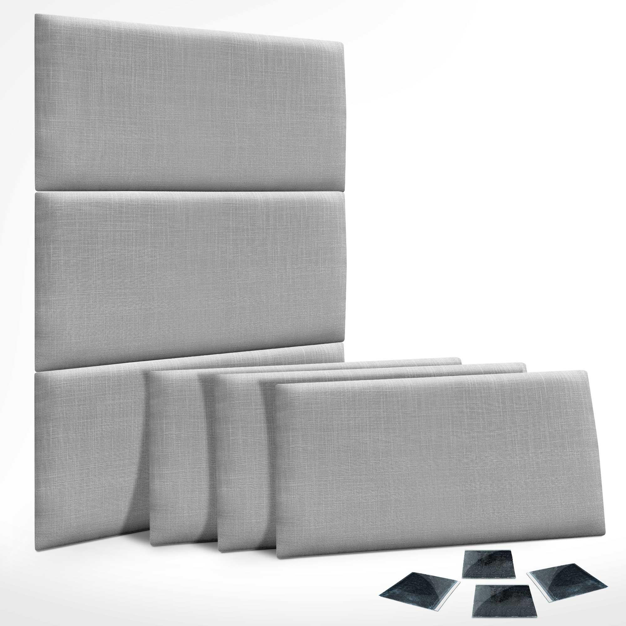 DHOME Set van 6 gestoffeerde linnen panelen – Zelfklevende wandpanelen, geluidsabsorberend, schokbescherming, hoofdbord (Lichtgrijs, 50x30cm, x6)