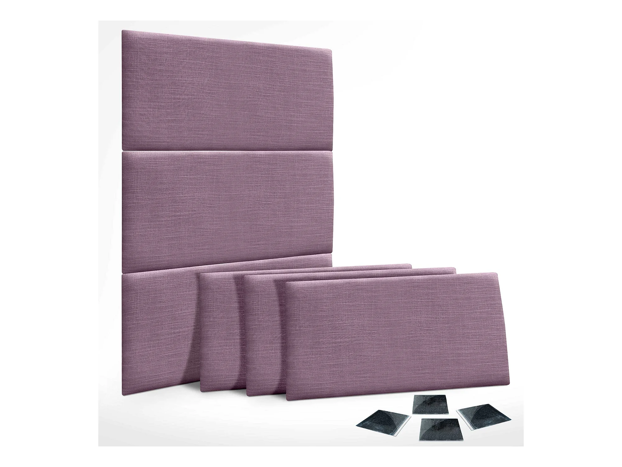 DHOME Set van 6 gestoffeerde linnen panelen – Zelfklevende wandpanelen, geluidsabsorberend, schokbescherming, hoofdbord (Lila, 60x50cm, x6)