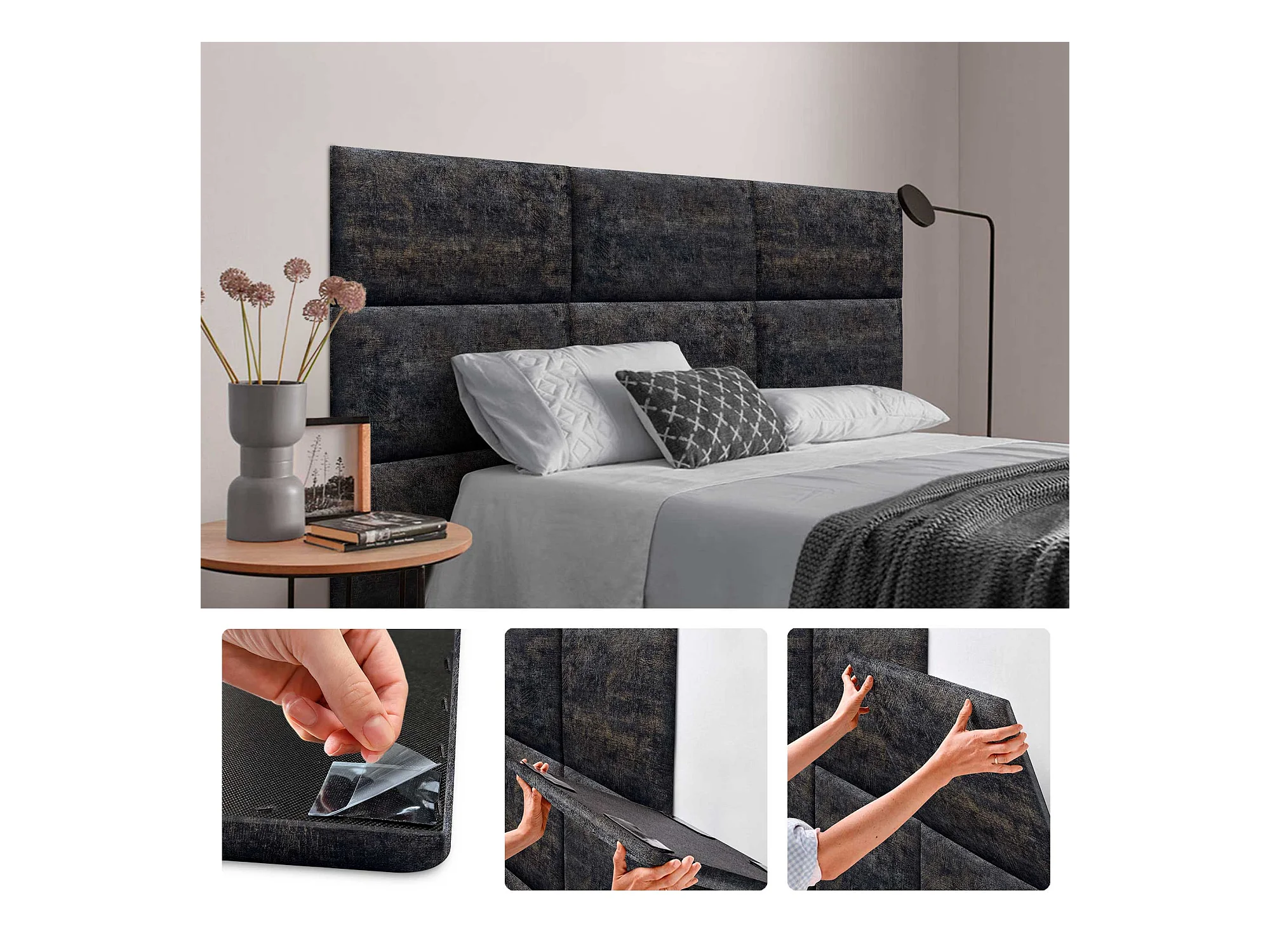 DHOME Set van 6 Luxe Stoffen Zelfklevende Gestoffeerde Panelen voor Muur, Geluidsabsorberend en Beschermend (Luxurious Black, 50x40cm, x6)