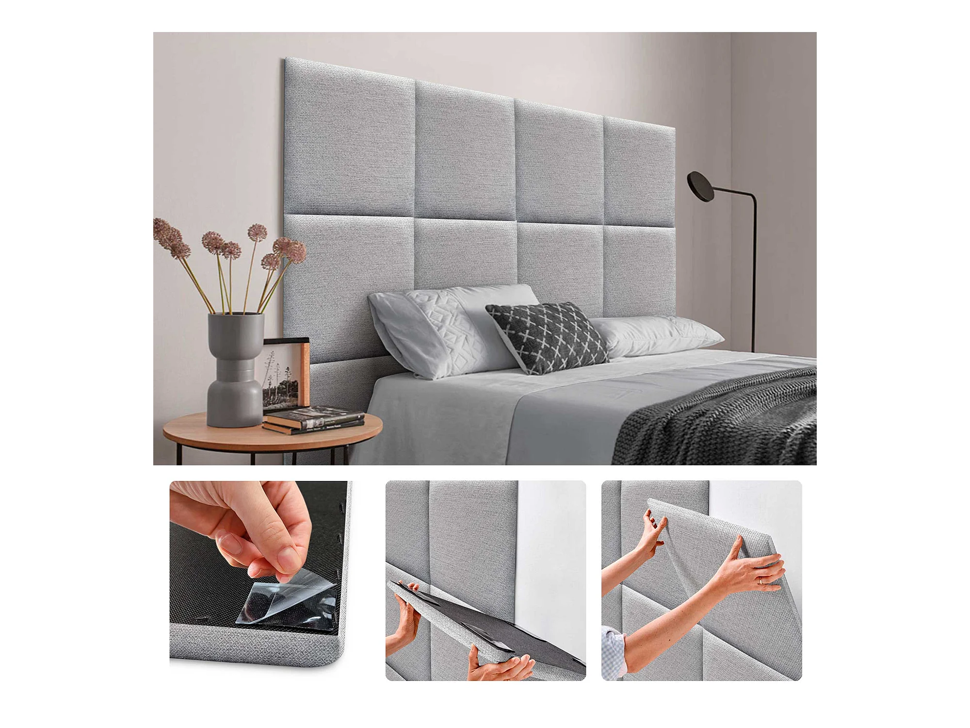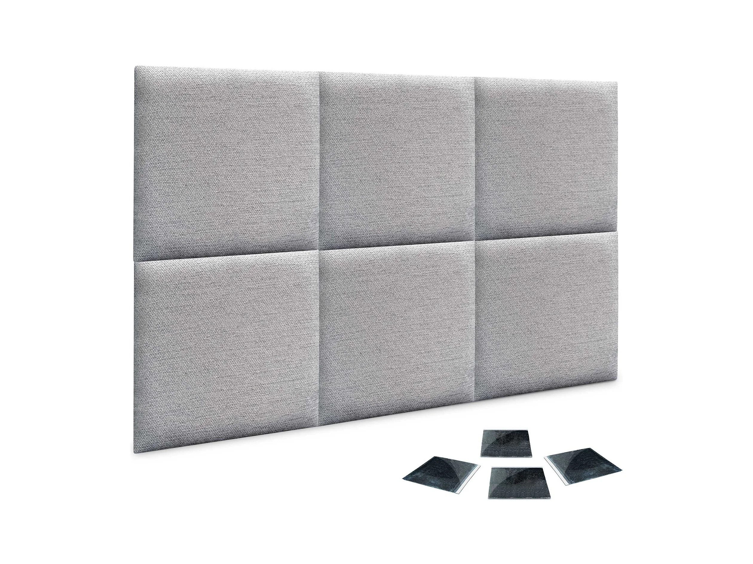 DHOME Set van 6 gestoffeerde linnen panelen – Zelfklevende wandpanelen, geluidsabsorberend, schokbescherming, hoofdbord (Lichtgrijs, 50x50cm, x6)
