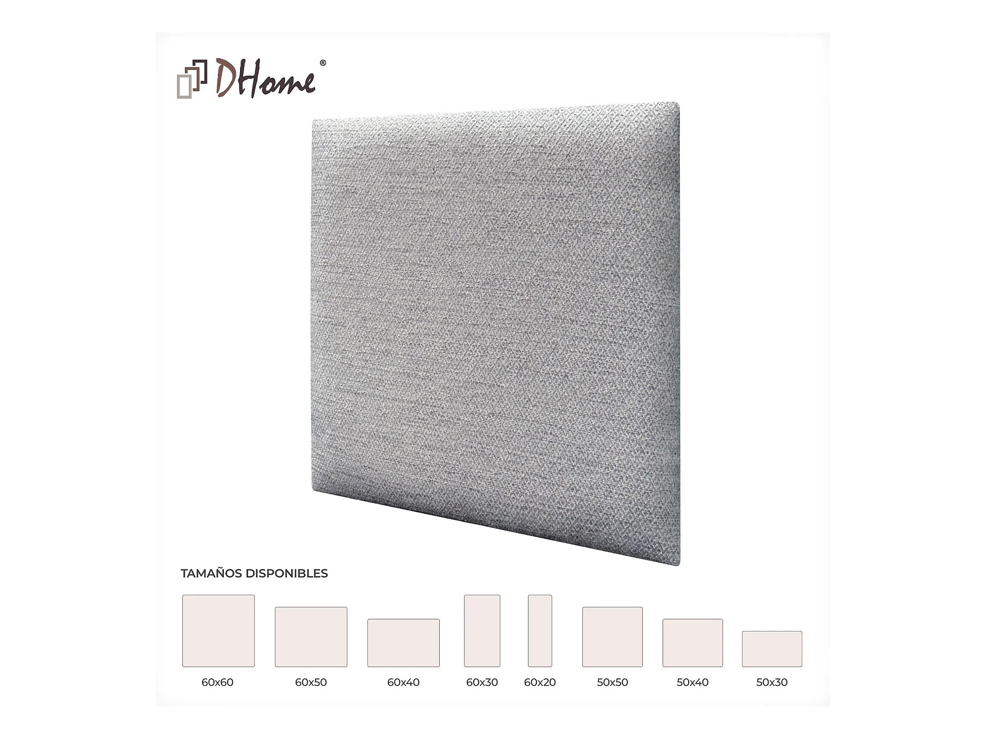 DHOME set van 1 zelfklevend gestoffeerd paneel voor muur, geluidsabsorberend, schokbescherming, hoofdbord (Asgrijs, 50x50cm, x1)