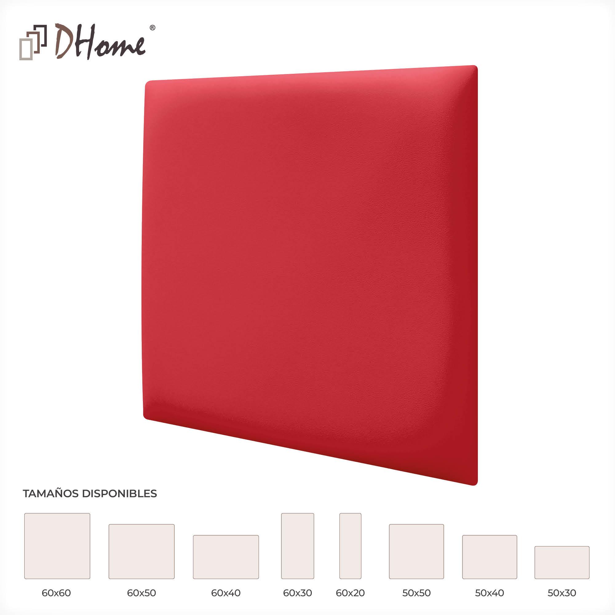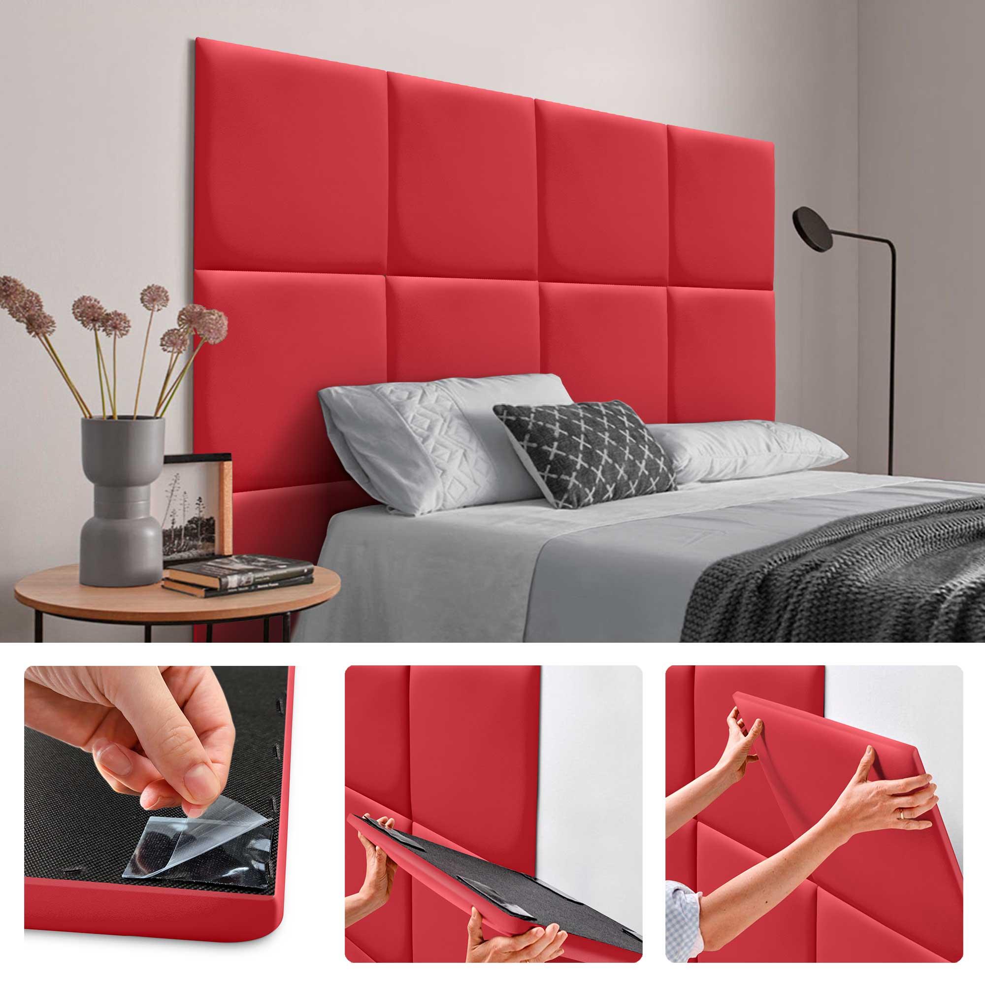 DHOME Set van 6 milieuvriendelijke kunstleren beklede panelen Zelfklevende verpakking voor akoestische absorberende bescherming aan de muur (rood, 60x60 cmx6)