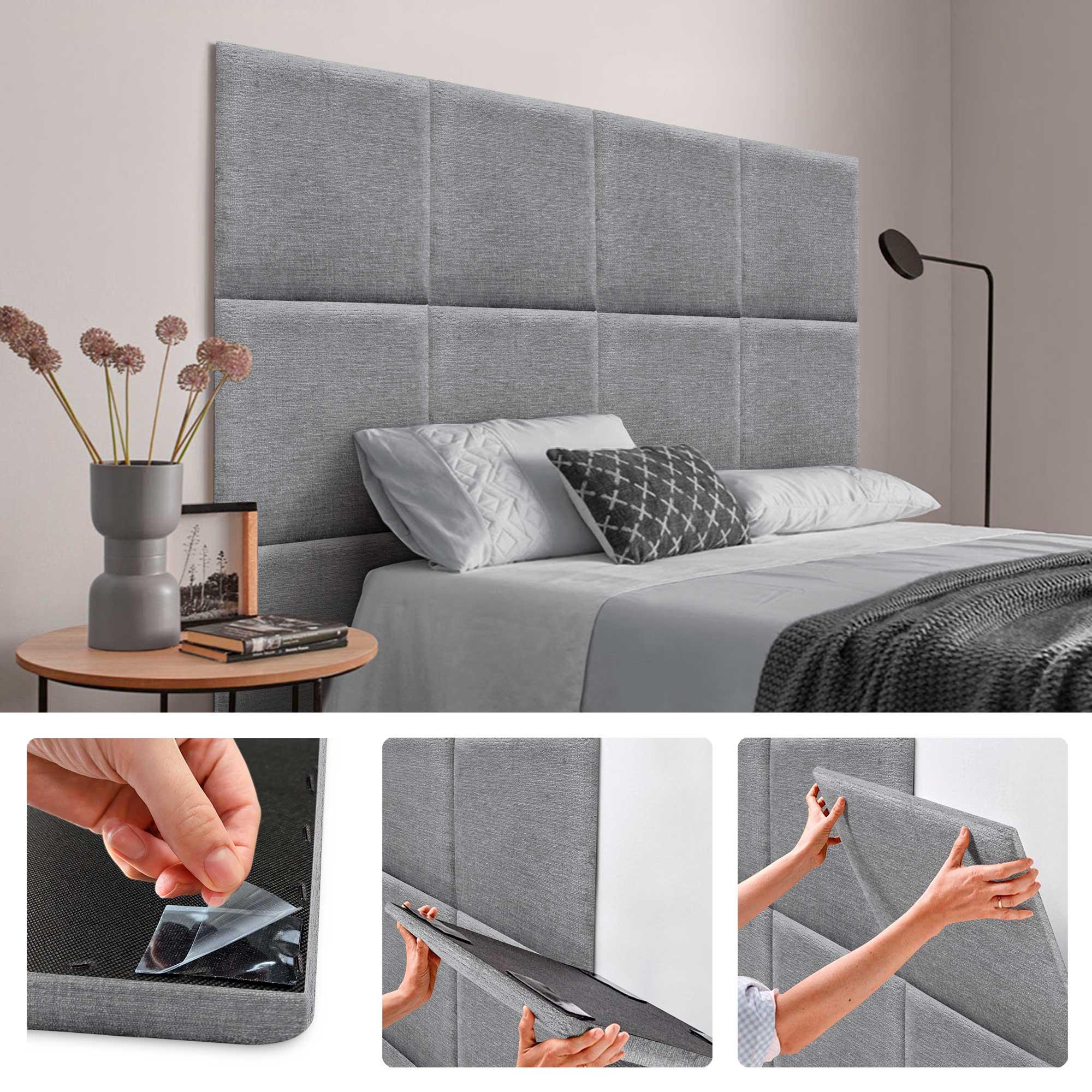 DHOME Set van 6 milieuvriendelijke wollen gestoffeerde panelen Zelfklevende akoestische wandpanelen Absorberende bescherming (grijs, 50x50cm, x6)