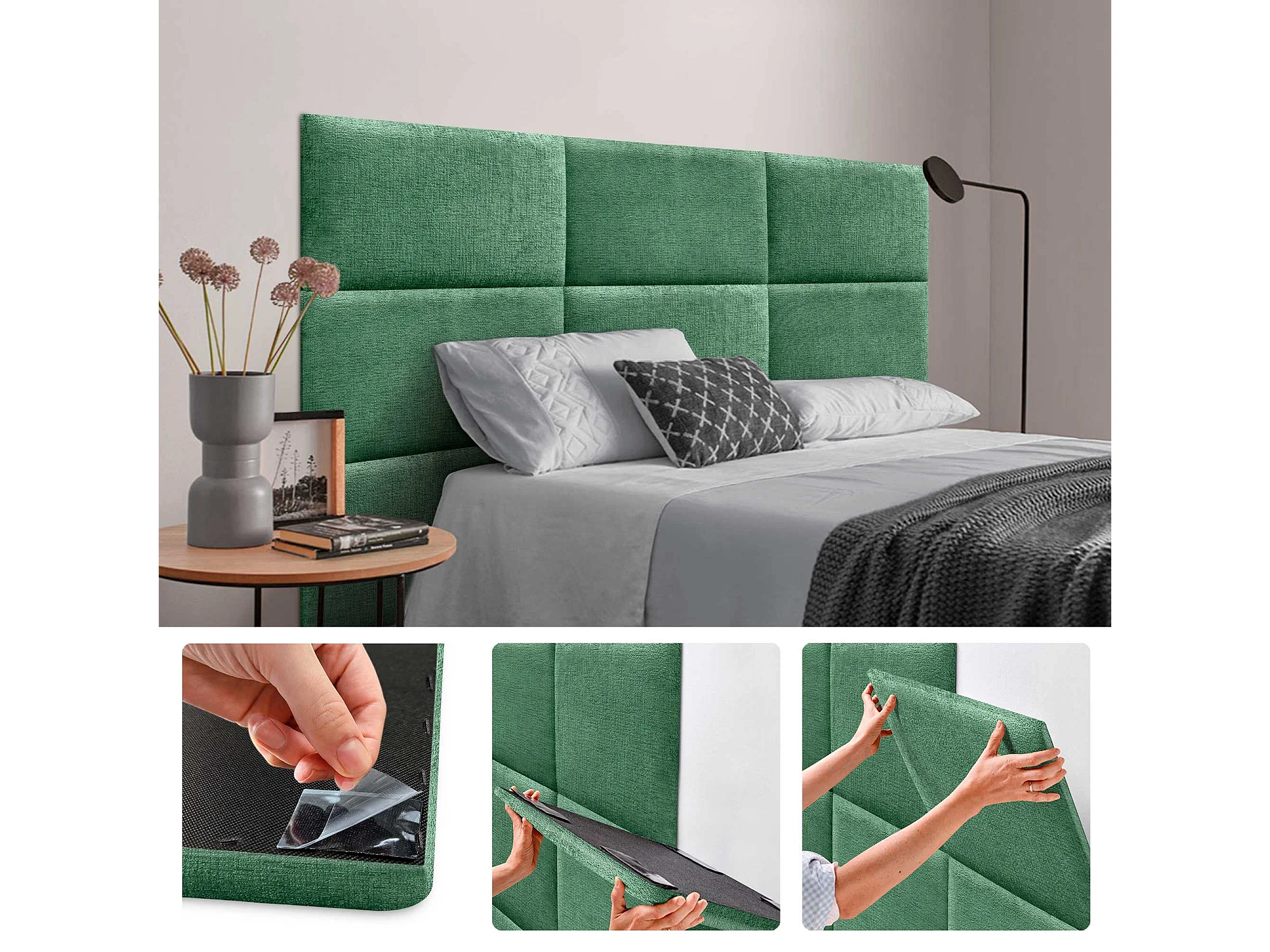 DHOME Set van 6 milieuvriendelijke wollen gestoffeerde panelen Zelfklevende akoestische wandpanelen Absorberende bescherming (groen, 60x50cm, x6)