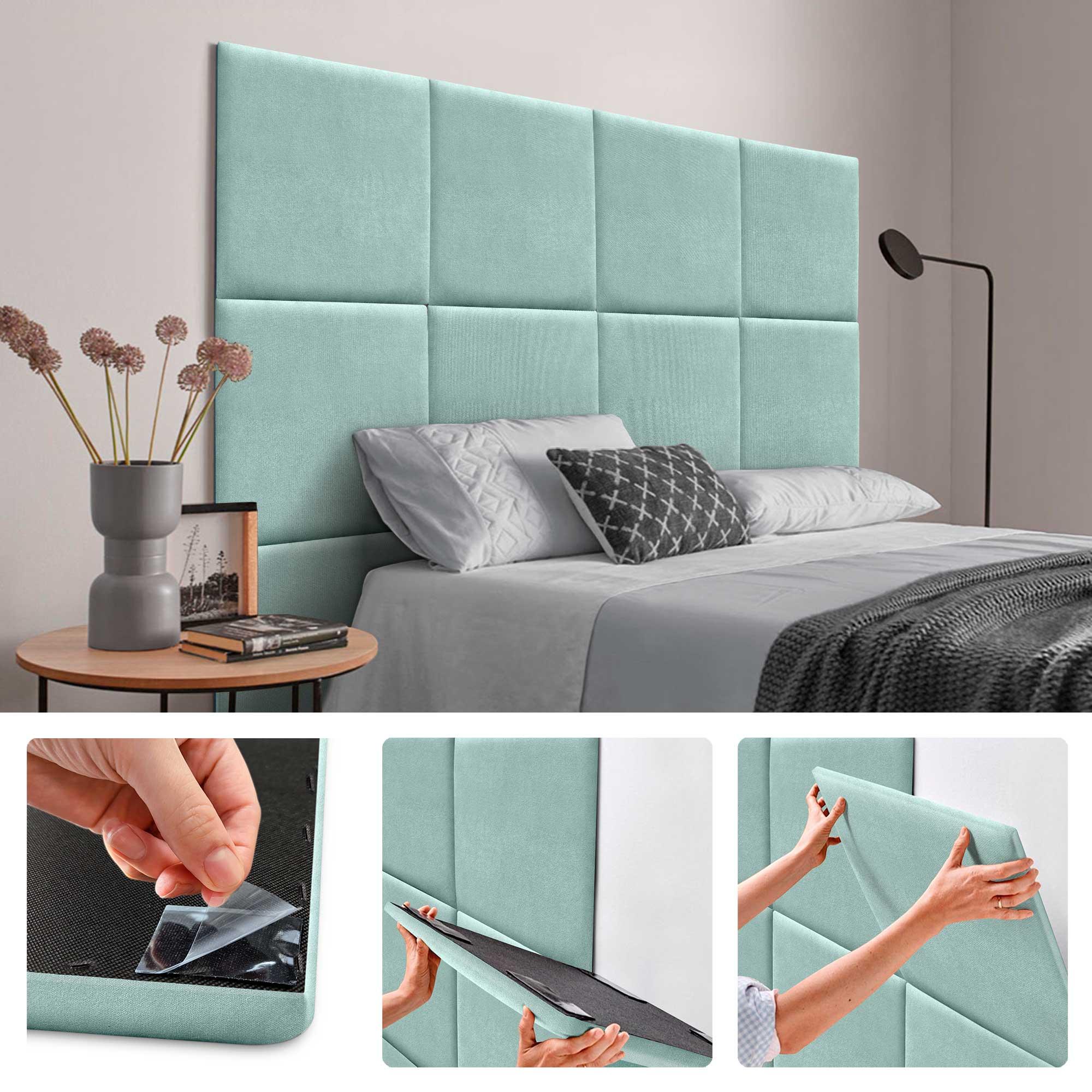 DHOME set van 6 zelfklevende gestoffeerde panelen voor muur, geluidsabsorberend, schokbescherming, hoofdbord (Aqua Groen, 50x50cm, x6)