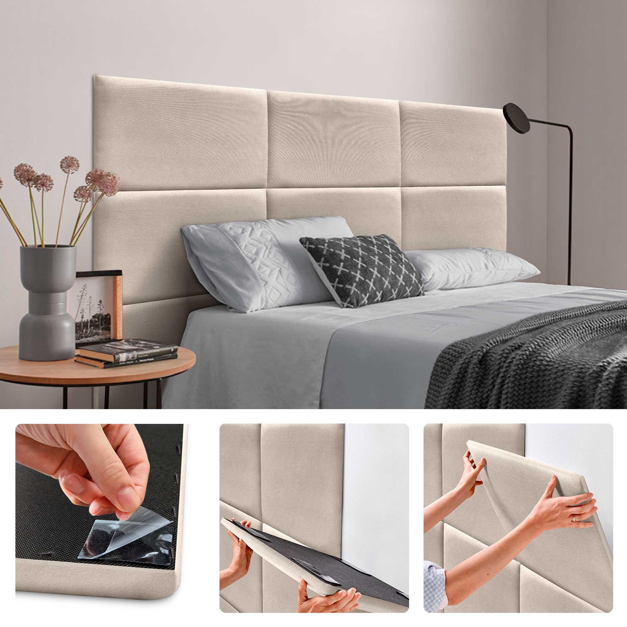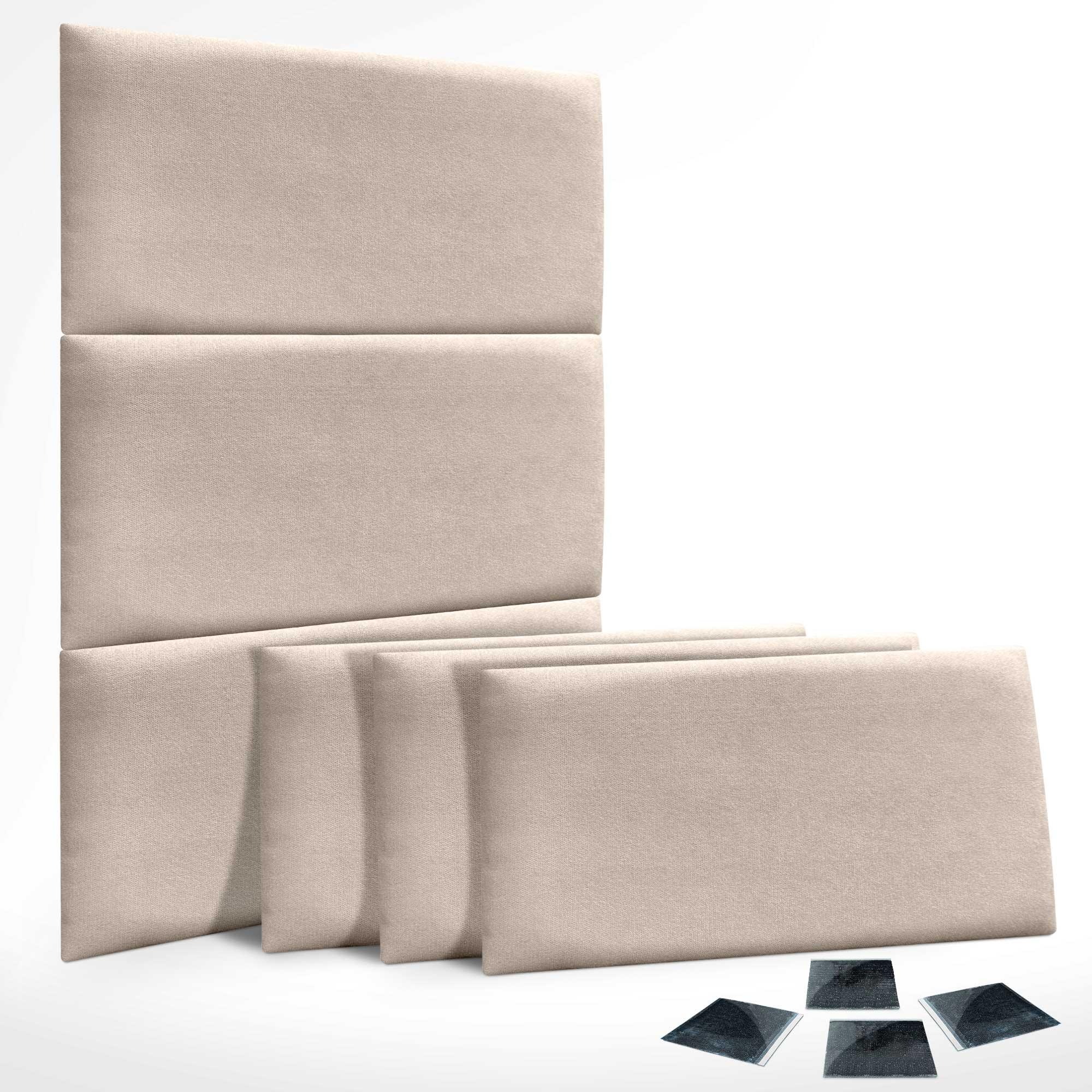 DHOME set van 6 zelfklevende gestoffeerde panelen voor muur, geluidsabsorberend, schokbescherming, hoofdbord (Beige, 60x50cm, x6)