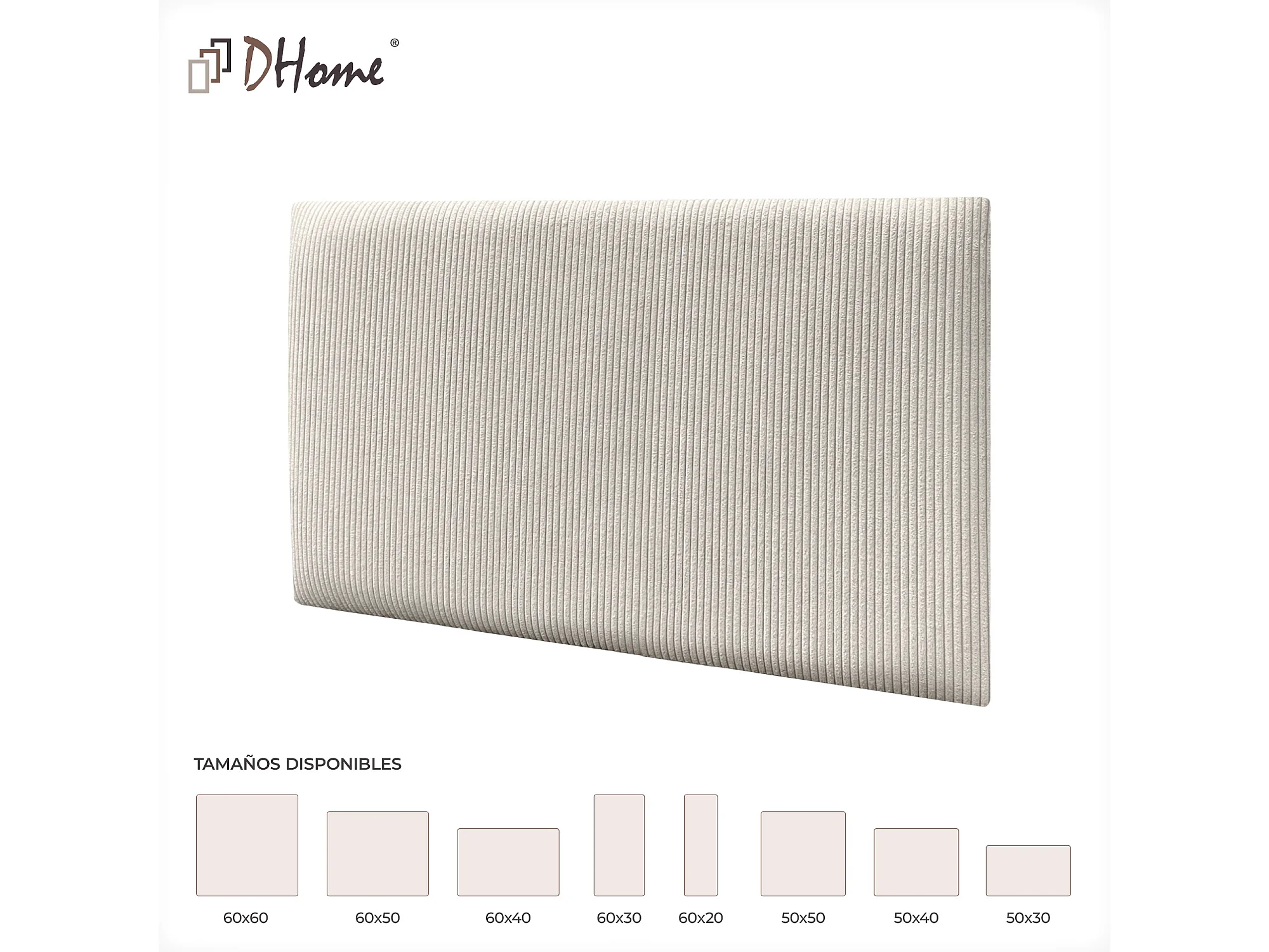 DHOME Set van 6 Premium Zelfklevende Beklede Panelen van Ribfluweel voor Muur – Geluidsabsorberend & Stootbescherming (Ivoorwit, 60x40cm, x6)