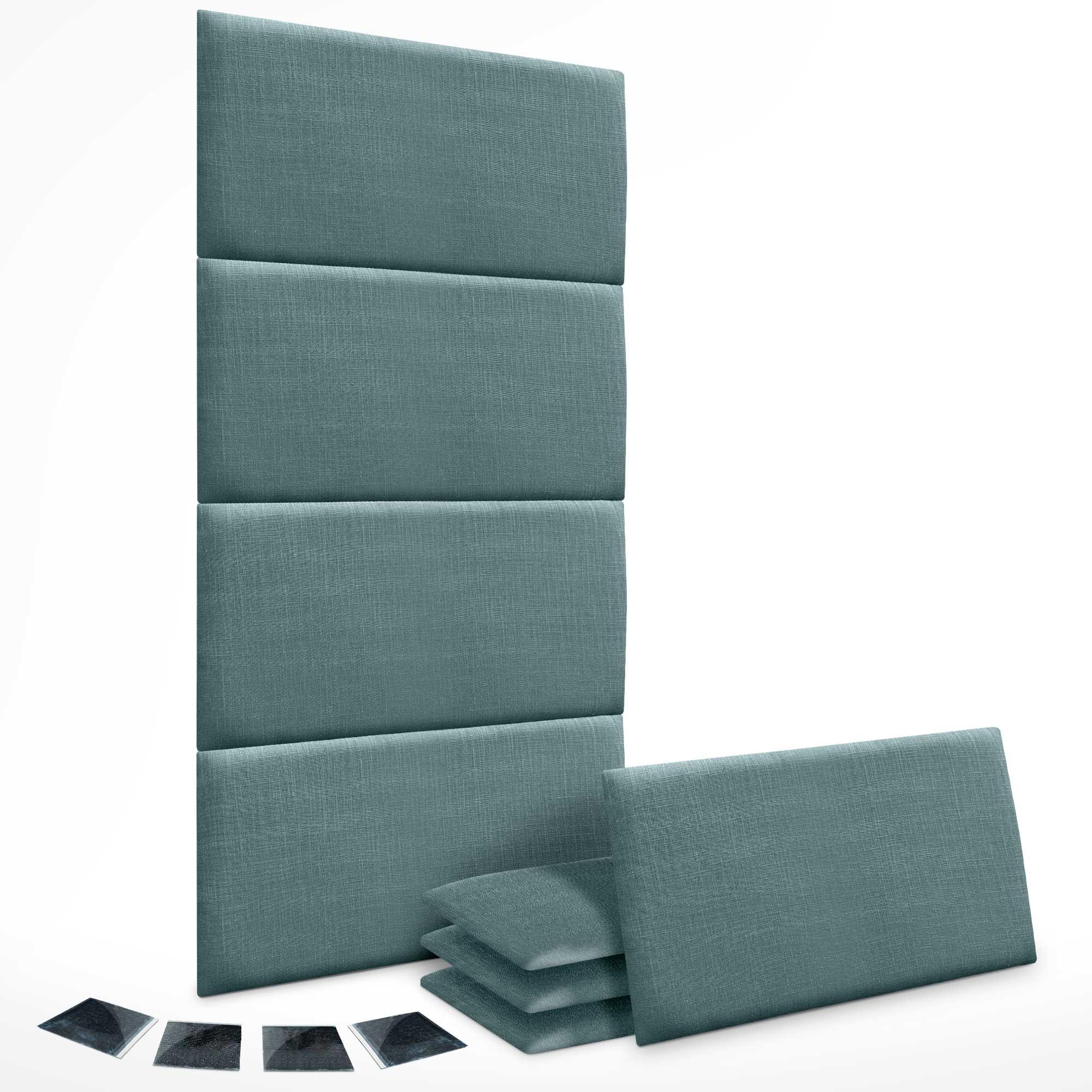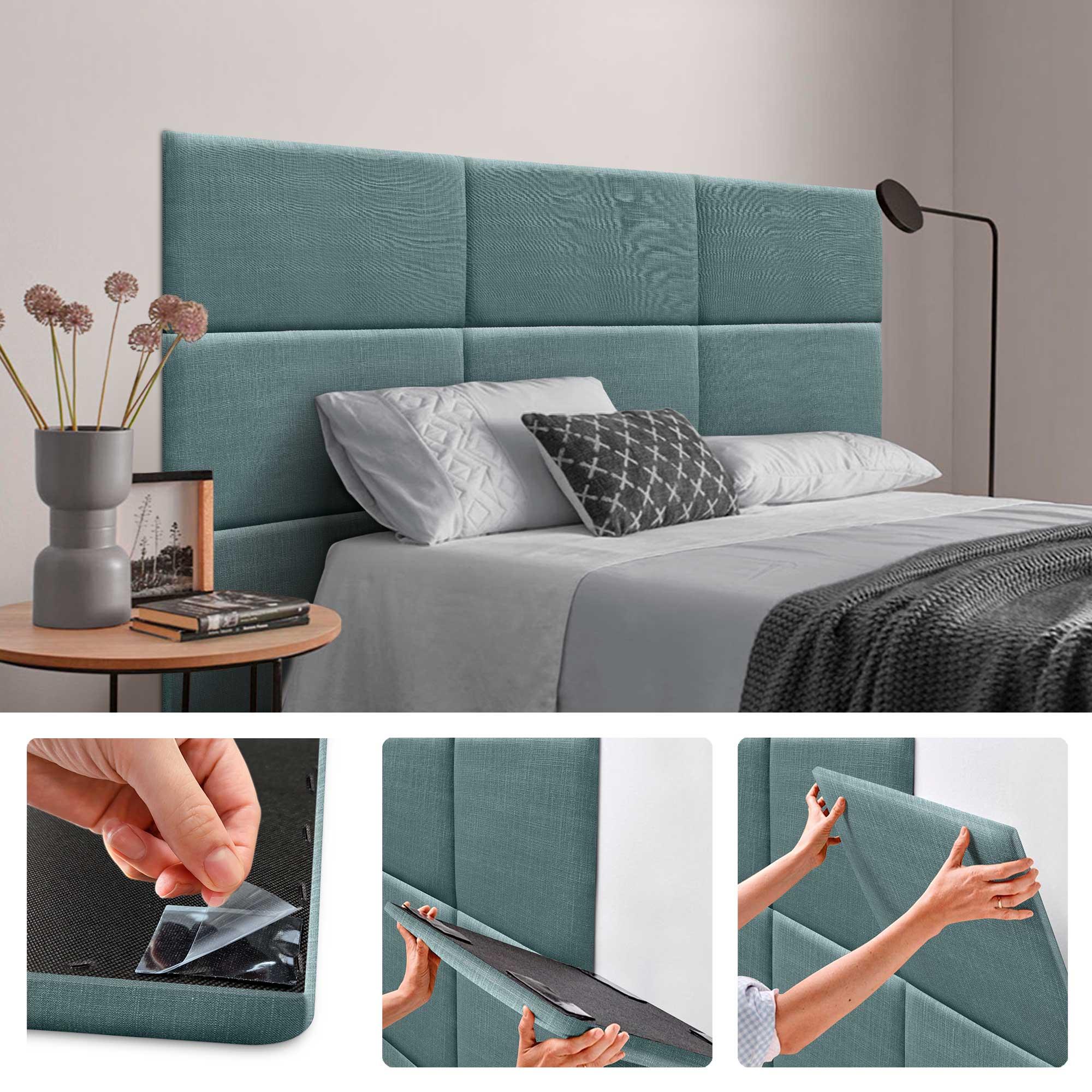 DHOME Set van 8 gestoffeerde linnen panelen – Zelfklevende wandpanelen, geluidsabsorberend, schokbescherming, hoofdbord (Turkoois, 50x40cm, x8)