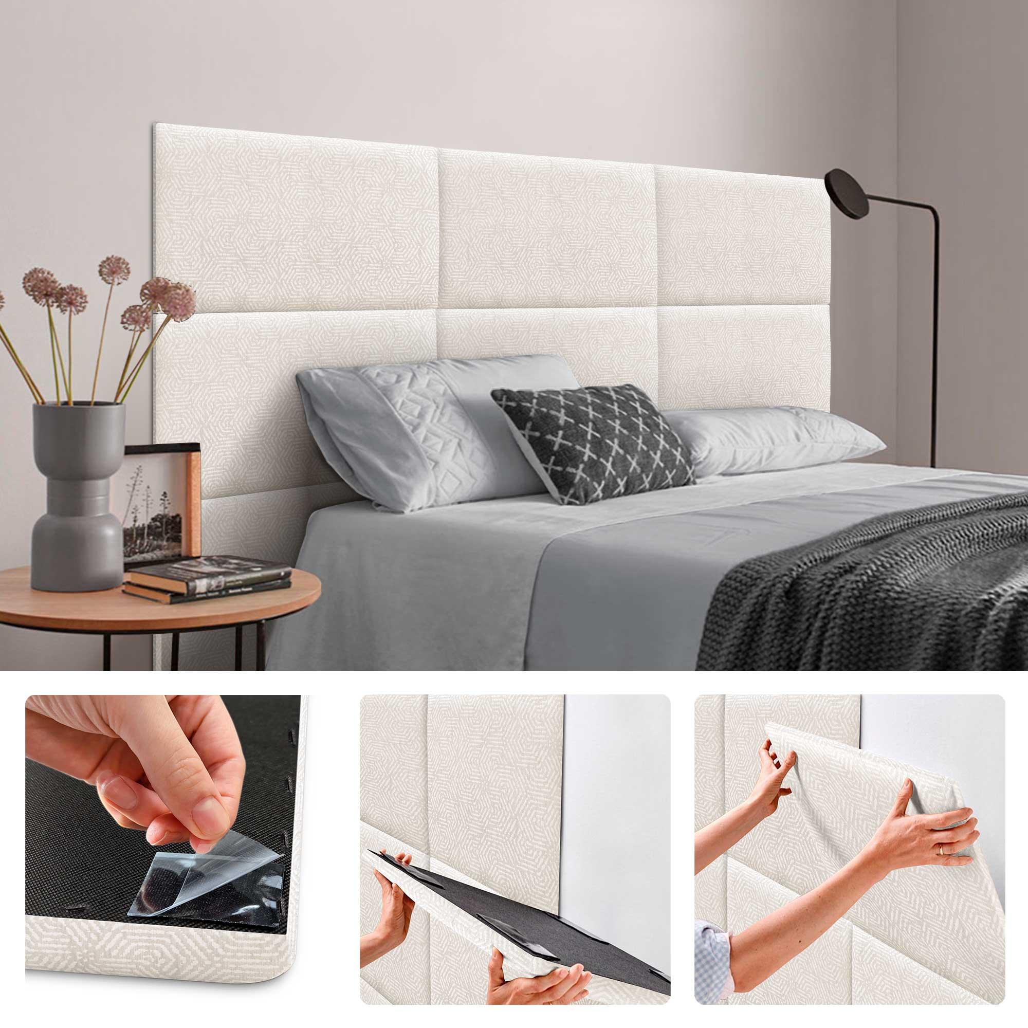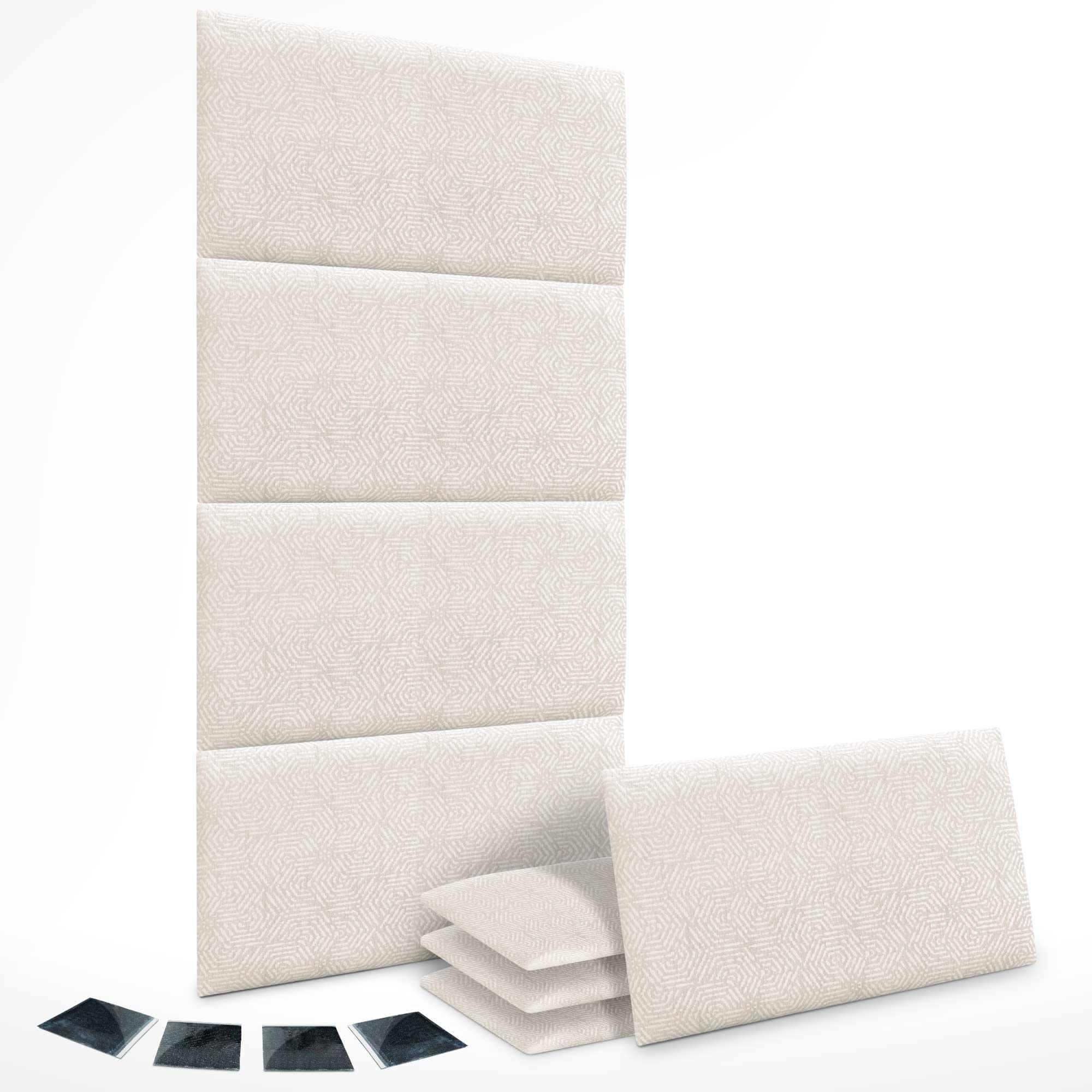 DHOME Set van 8 Luxe Stoffen Zelfklevende Gestoffeerde Panelen voor Muur, Geluidsabsorberend en Beschermend (Ethnic White, 50x50cm, x8)