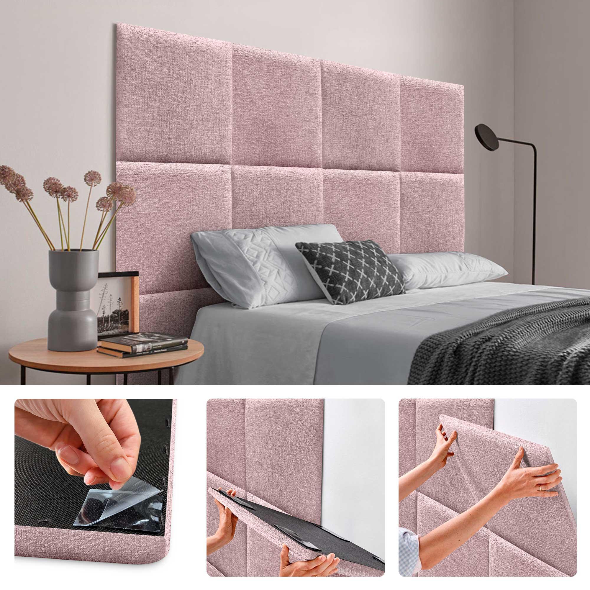 DHOME Gestoffeerd hoofdeinde in ecologische wol samengesteld uit verwisselbare zelfklevende panelen Luxe slaapkamer opgevuld (Zalm,200cm)