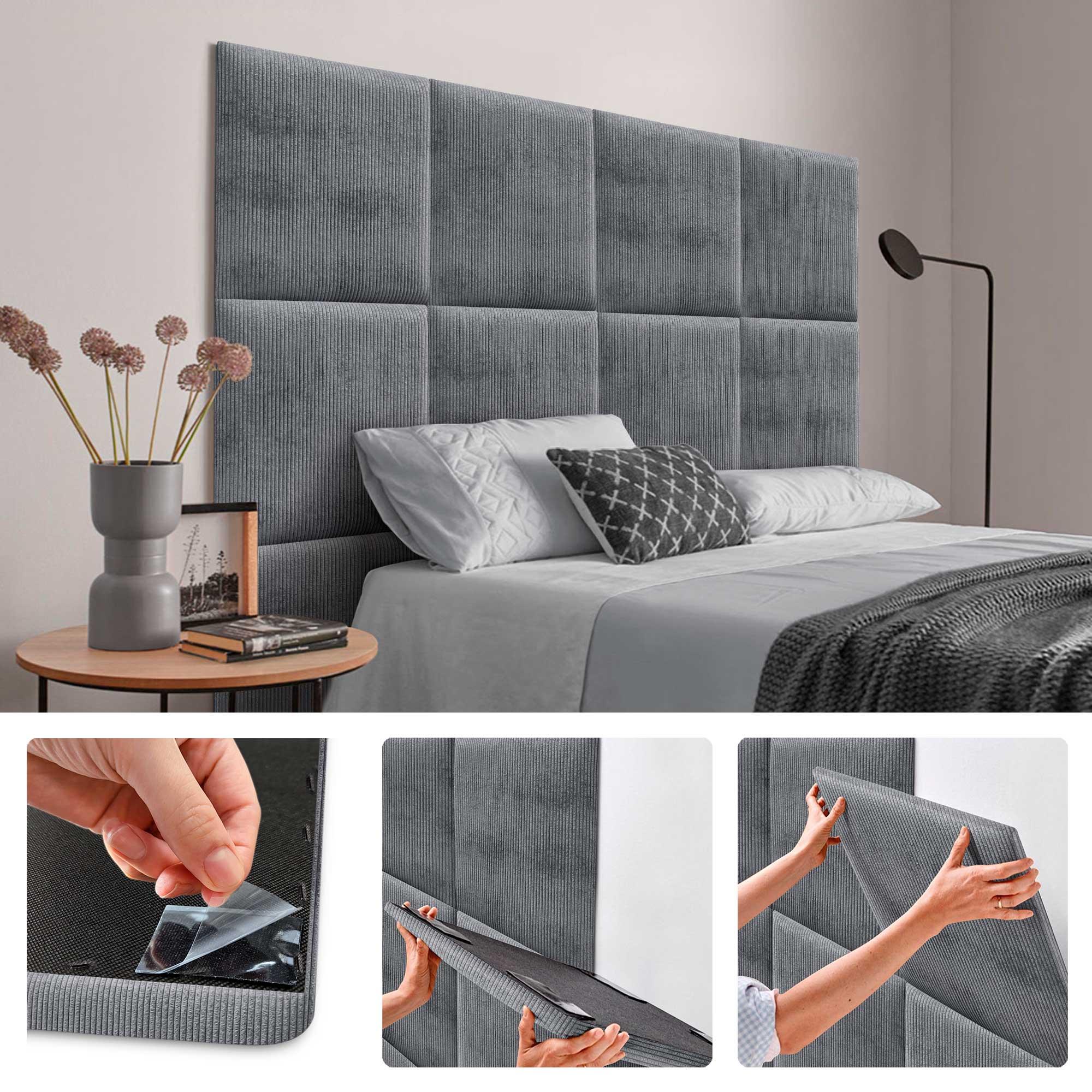 DHOME Set van 8 Premium Zelfklevende Beklede Panelen van Ribfluweel voor Muur – Geluidsabsorberend & Stootbescherming (Donkergrijs, 60x60cm, x8)