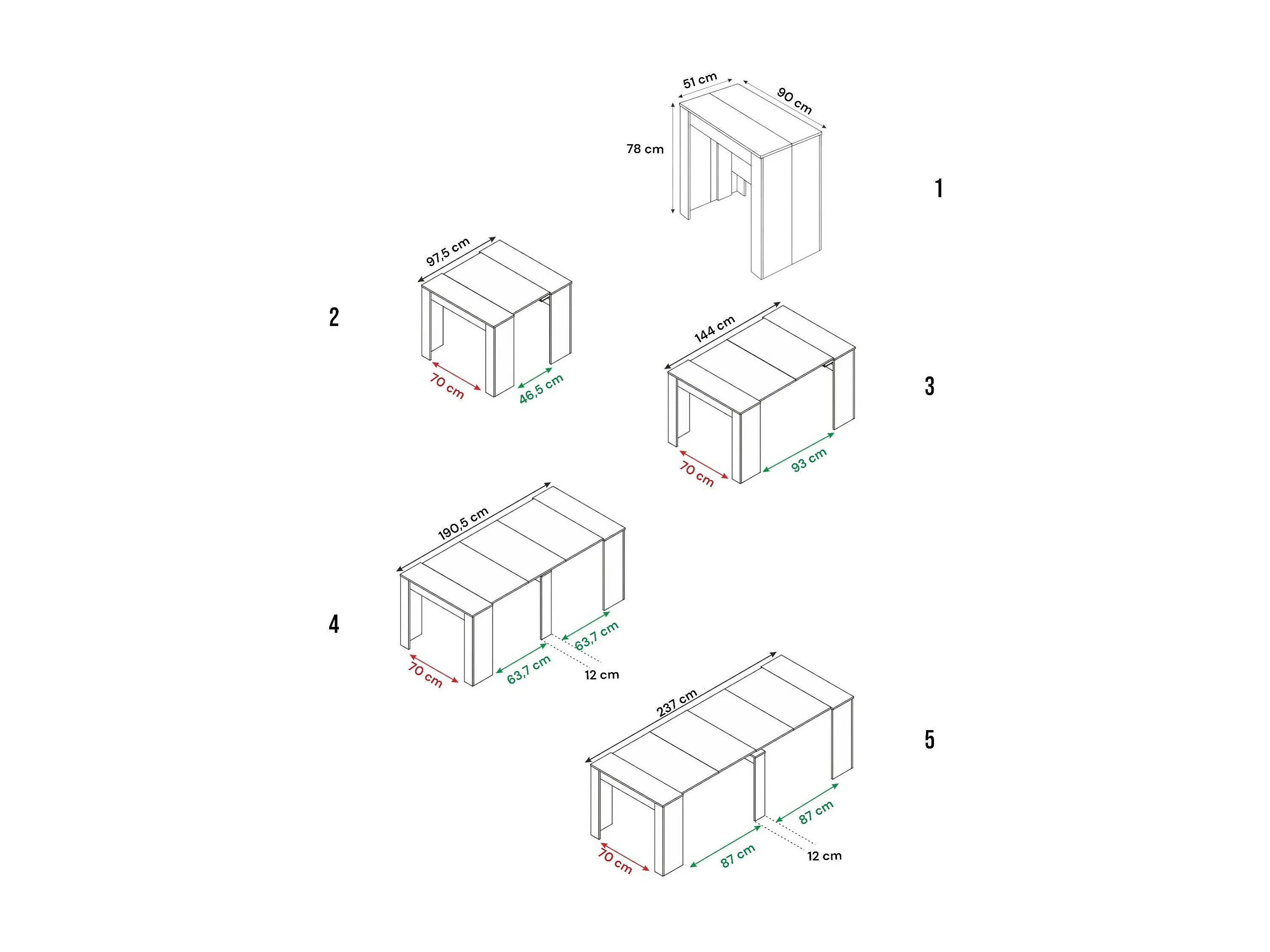 Dbiragh uitschuifbare console, Multifunctionele eettafel, Uitschuifbare console met meerdere posities inclusief verlenghouder, 54/239x90h77 cm, Wit