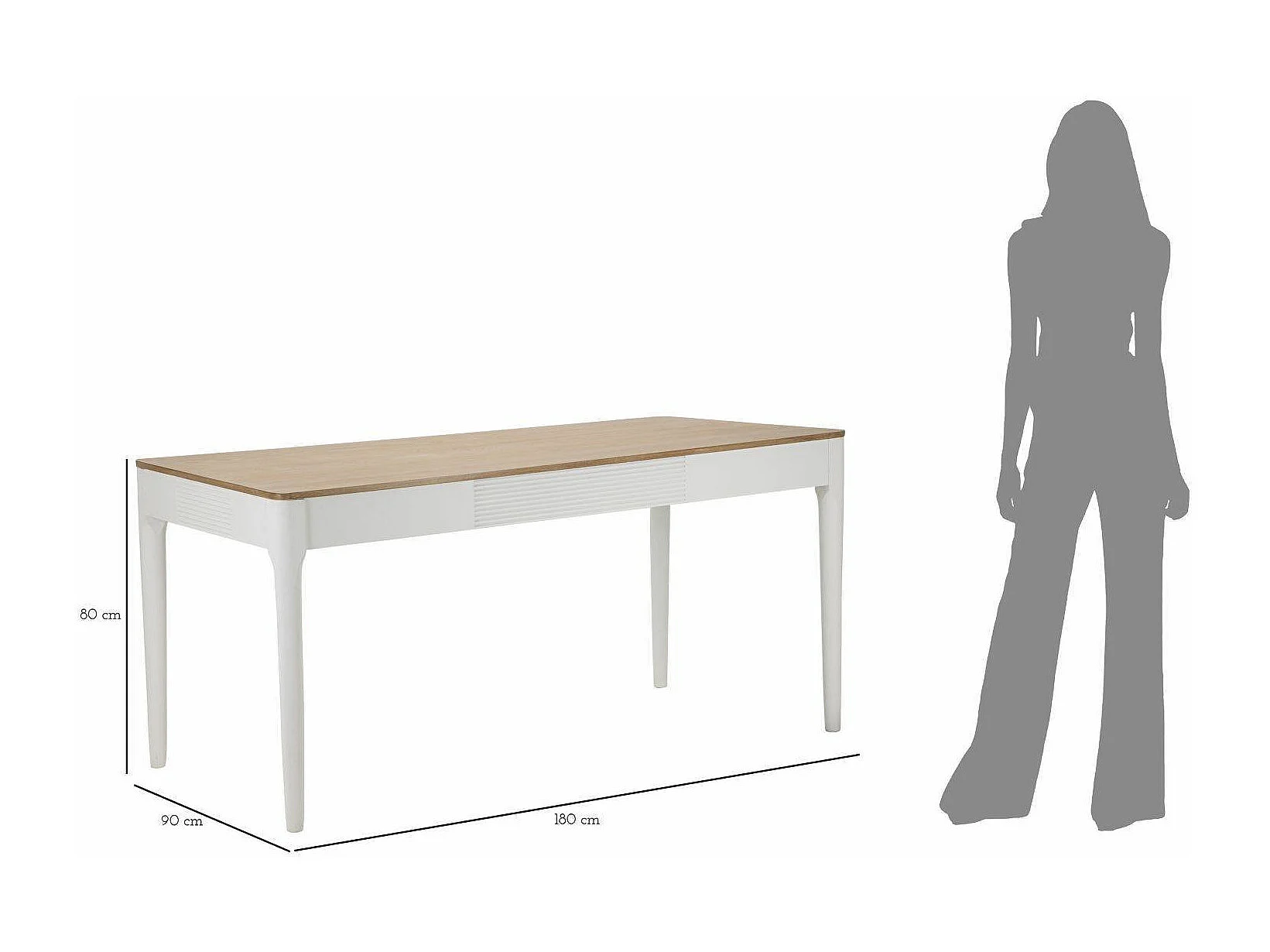 Dindga vaste tafel, Keukenplank, Eetkamerconsole, Vaste rechthoekige plank, 180x60 h80 cm, Wit en Bruin
