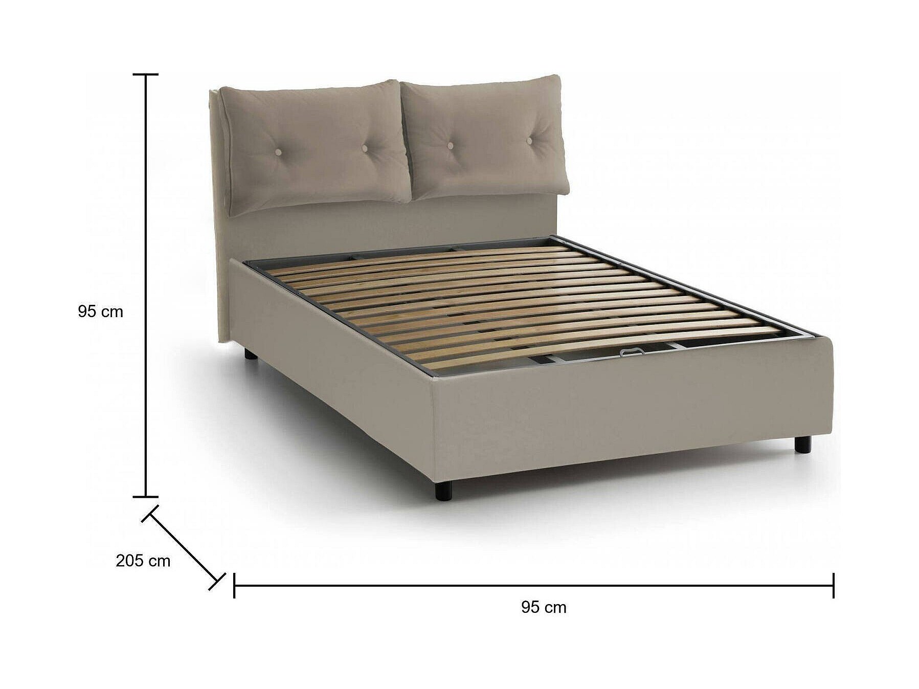 Dabass eenpersoonsbed, Opbergbed met eco-lederen bekleding, 100% Made in Italy, Opening aan de voorkant, geschikt voor matras 80x190 cm, Taupe