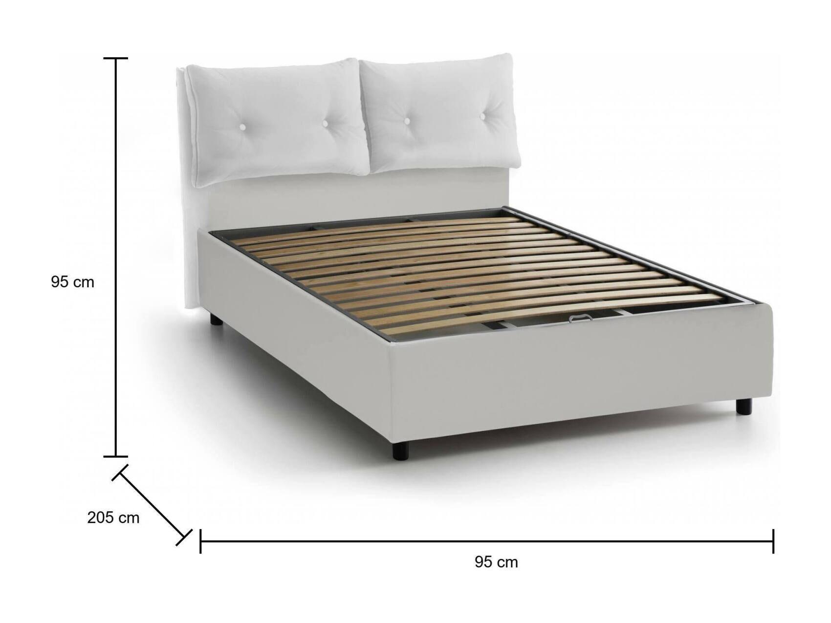 Diovin eenpersoonsbed, Opbergbed met eco-lederen bekleding, 100% Made in Italy, Opening aan de voorkant, geschikt voor matras van 80x190 cm, Wit