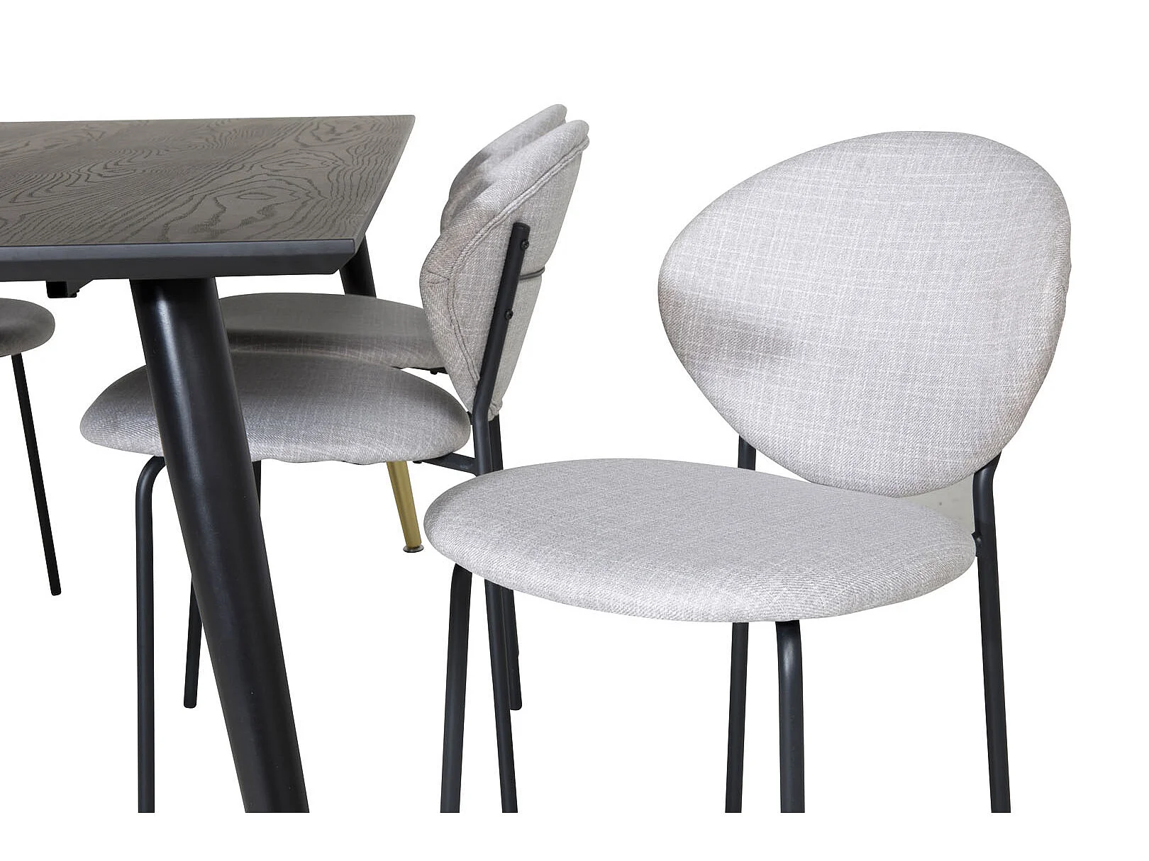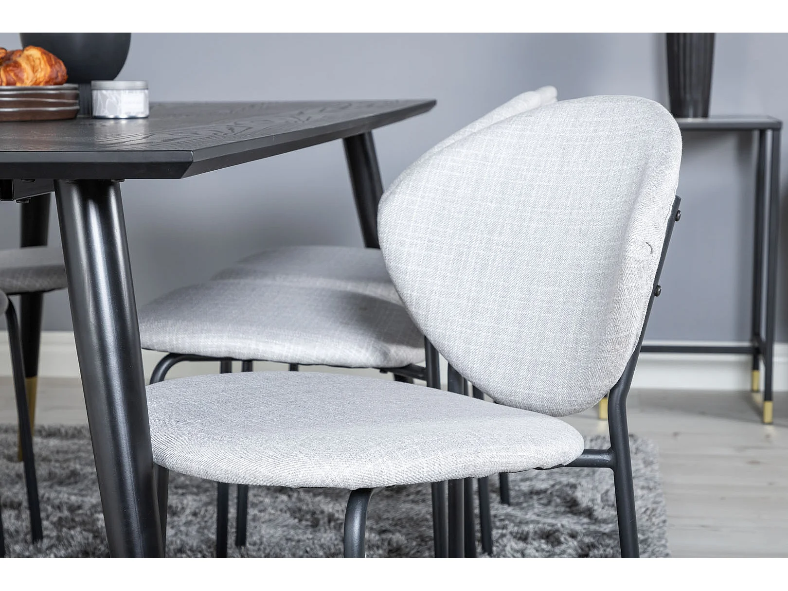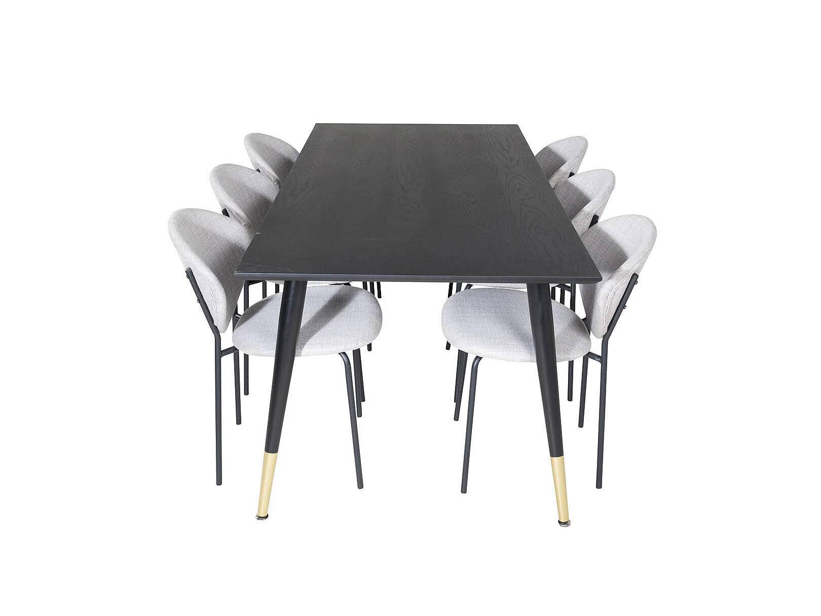 Dipp180x90BLBR eethoek eetkamertafel zwart en 6 Vault eetkamerstal grijs.