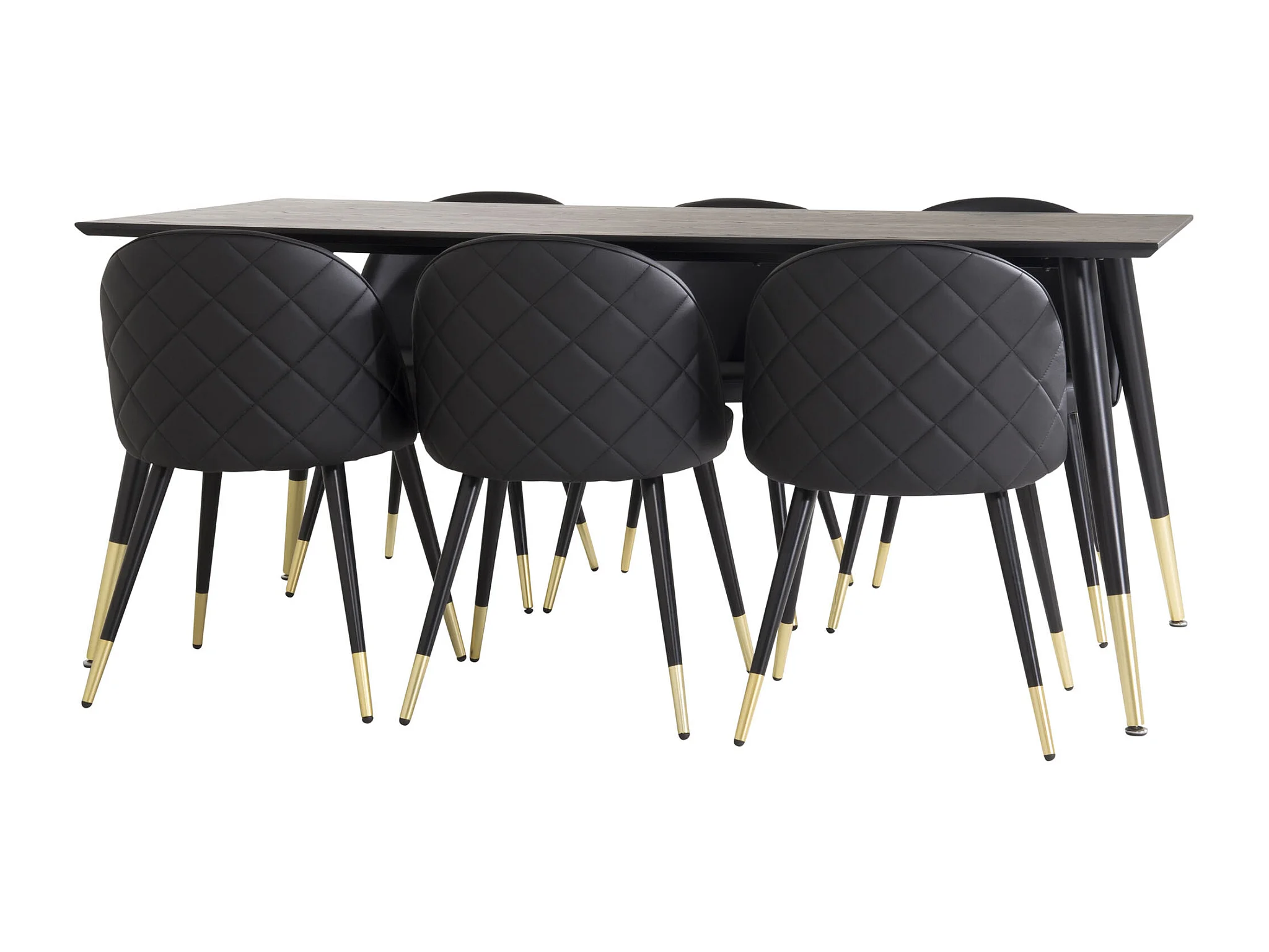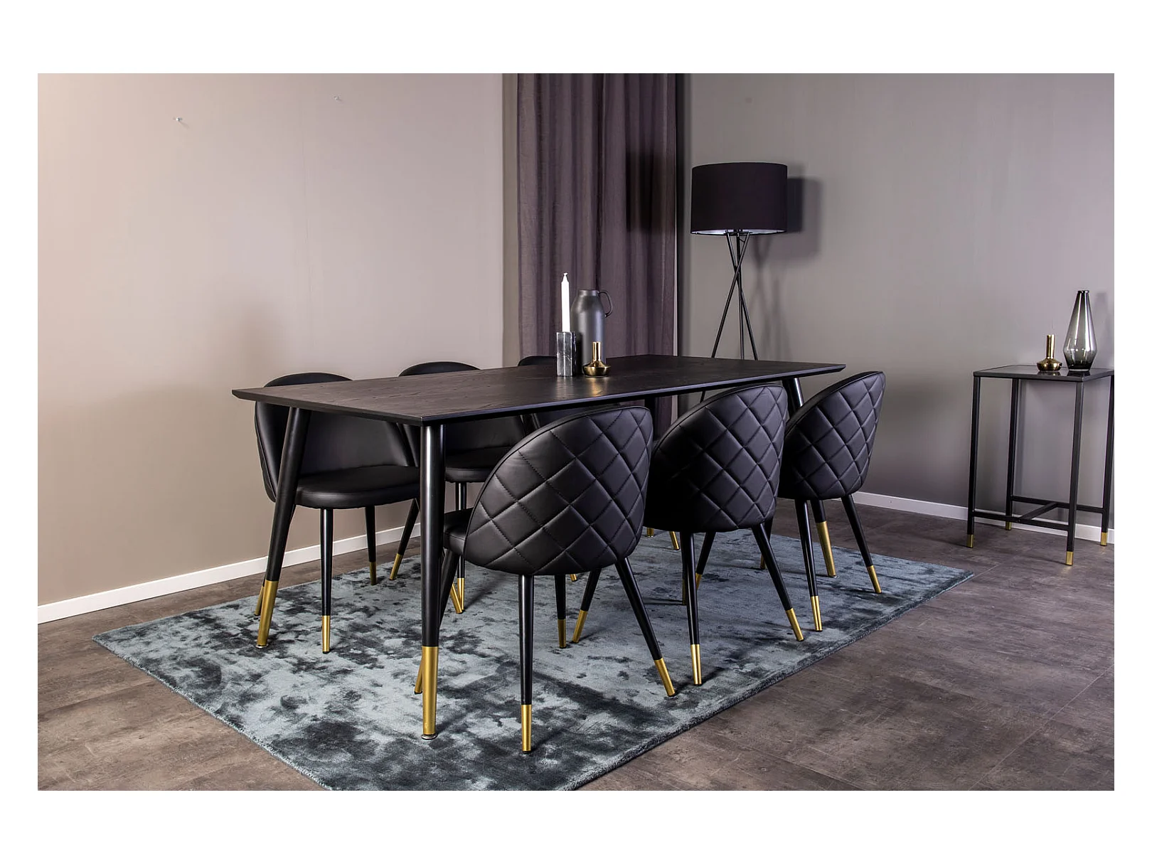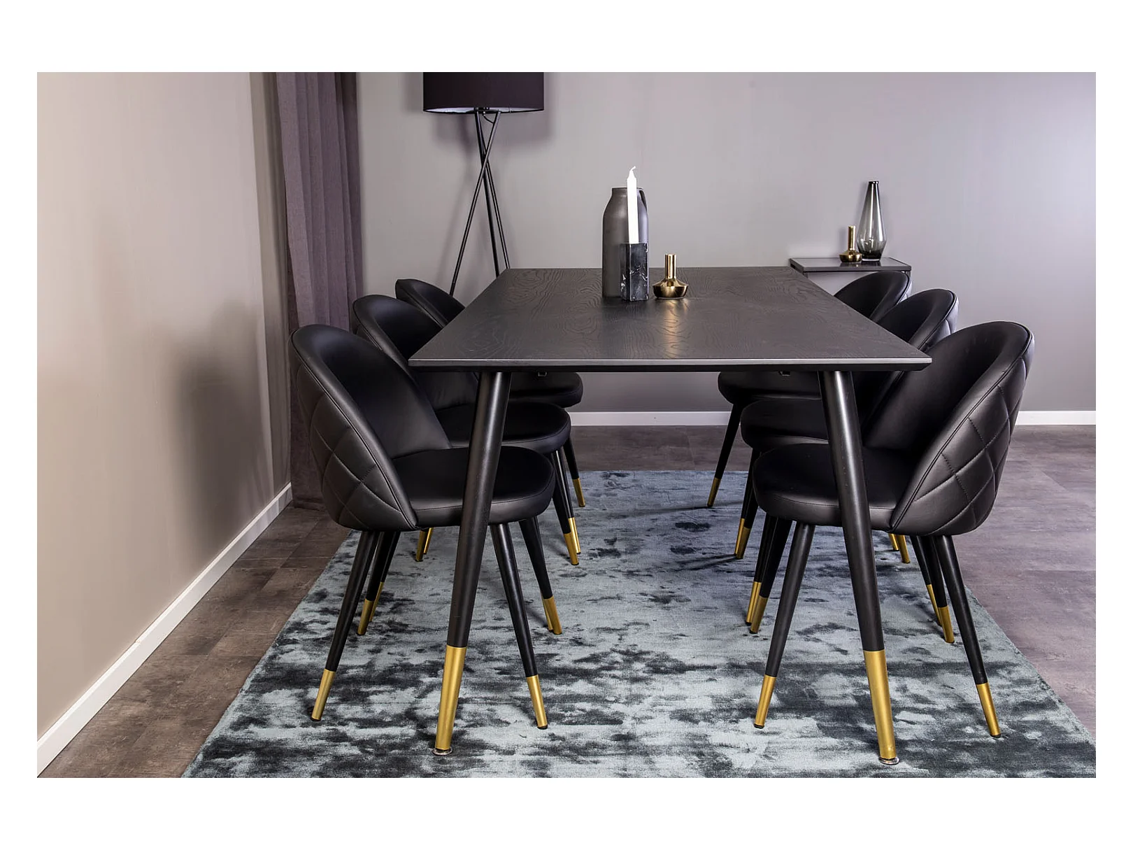 Dipp180x90BLBR eethoek eetkamertafel zwart en 6 Velvet eetkamerstal PU kunstleer zwart.
