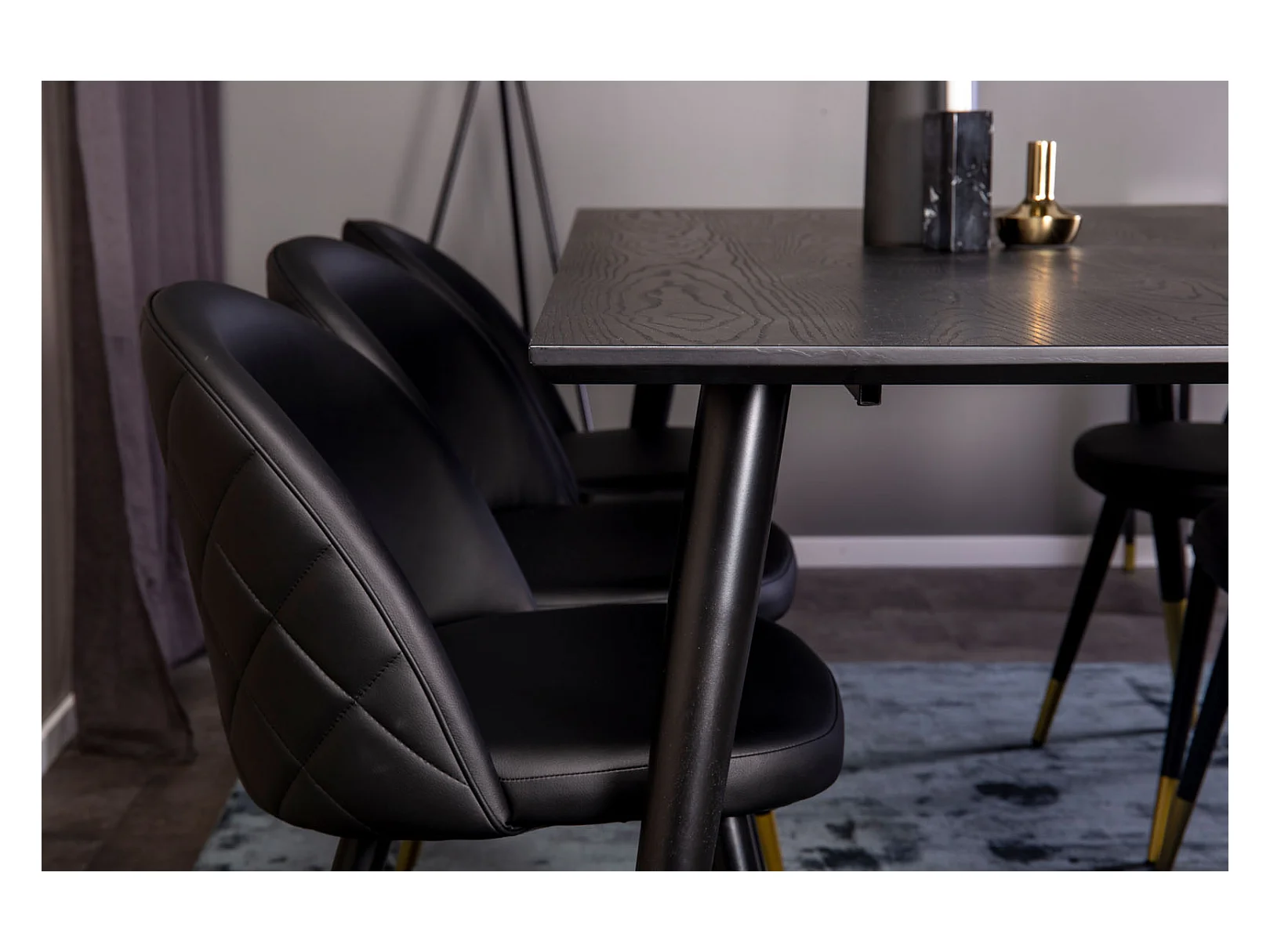 DippØ115BLBR eethoek eetkamertafel zwart en 4 Velvet eetkamerstal PU kunstleer zwart.