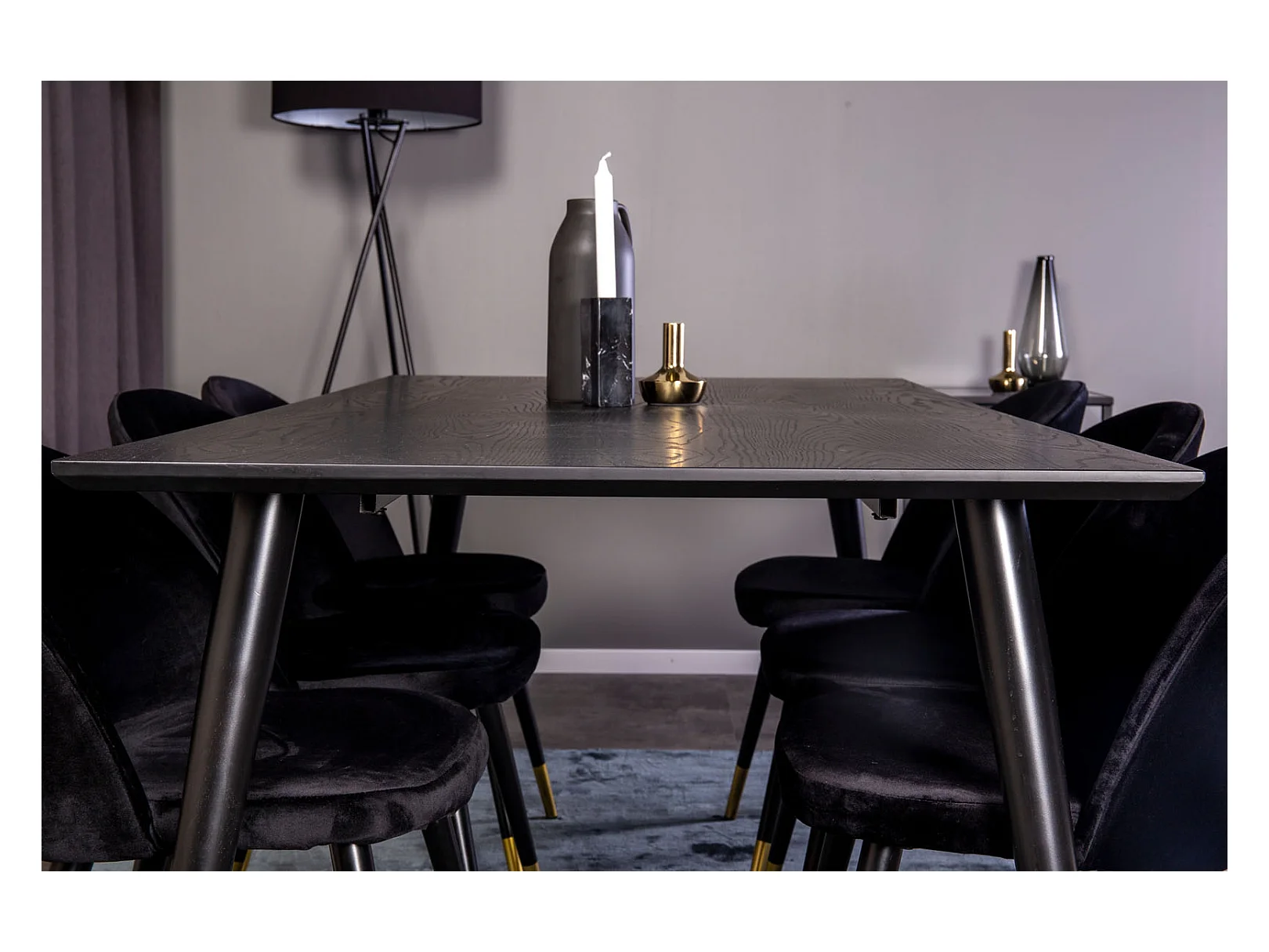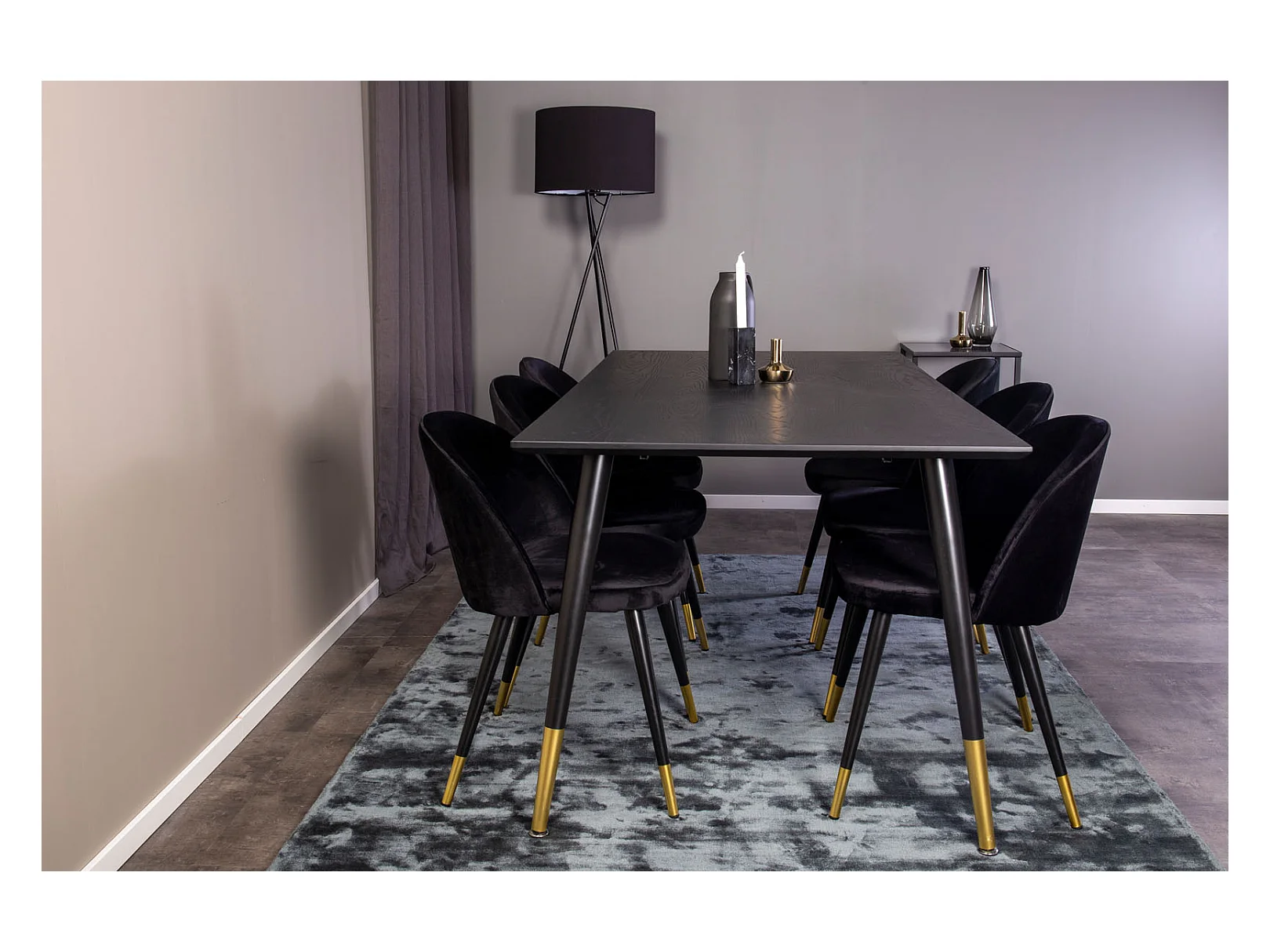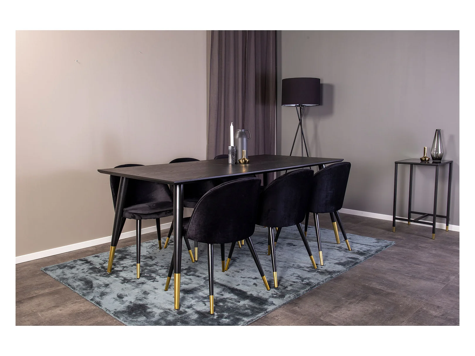 Dipp180x90BLBL eethoek eetkamertafel zwart en 6 Velvet eetkamerstal PU kunstleer zwart.