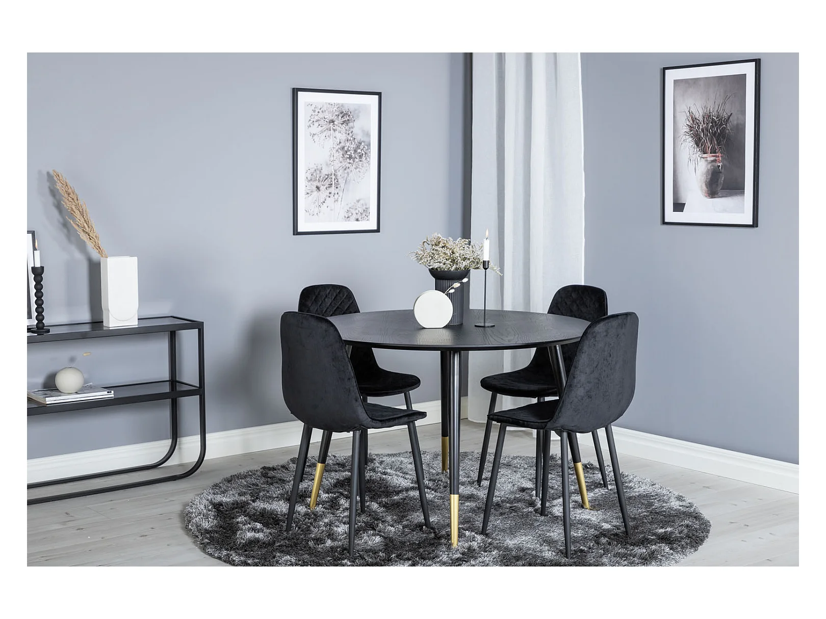 DippØ115BLBR eethoek eetkamertafel zwart en 4 Polar Diamond eetkamerstal velours zwart.