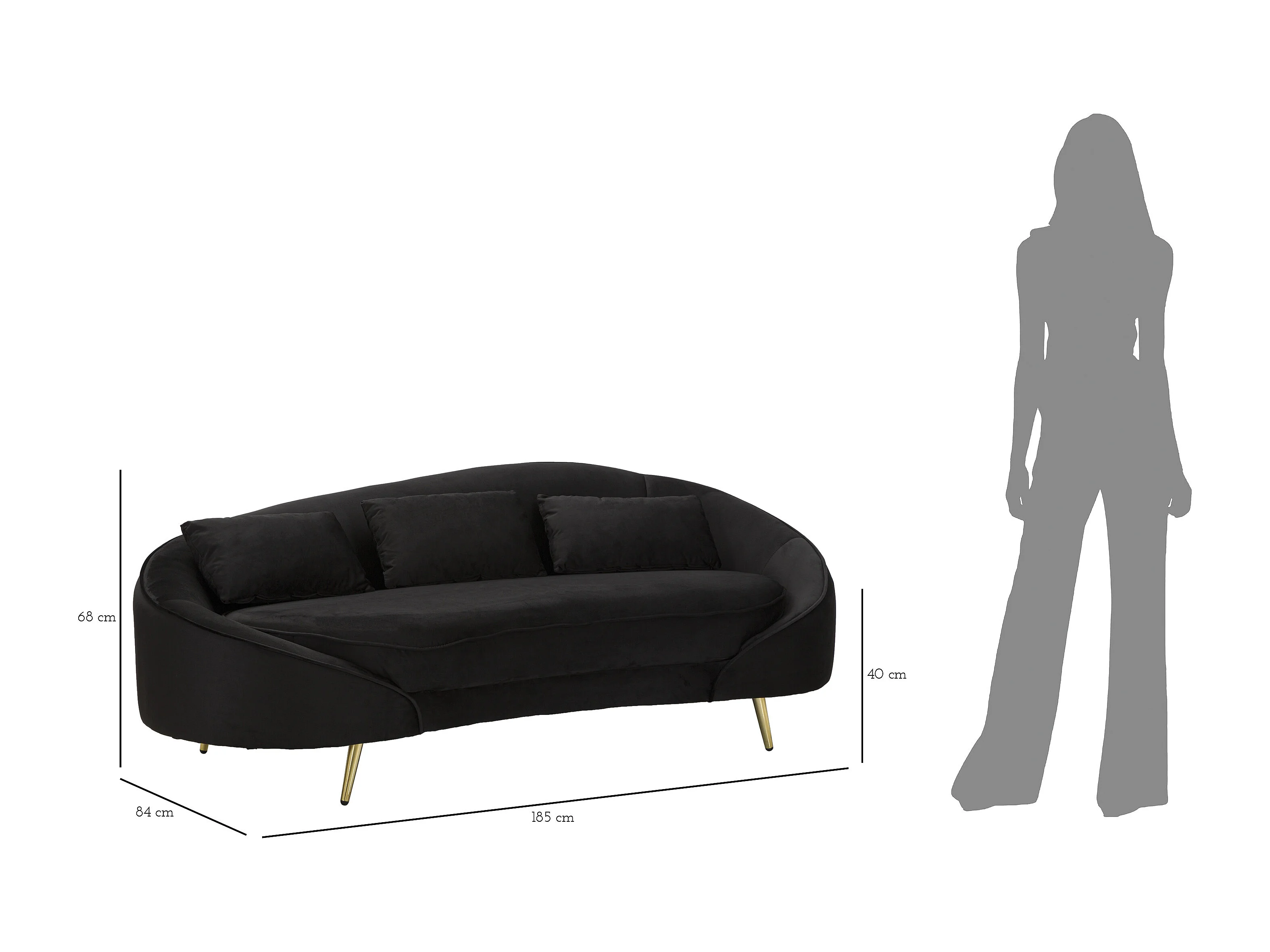 3 ZITBANK OSLO MET ZWARTE KUSSEN CM 185X84X68