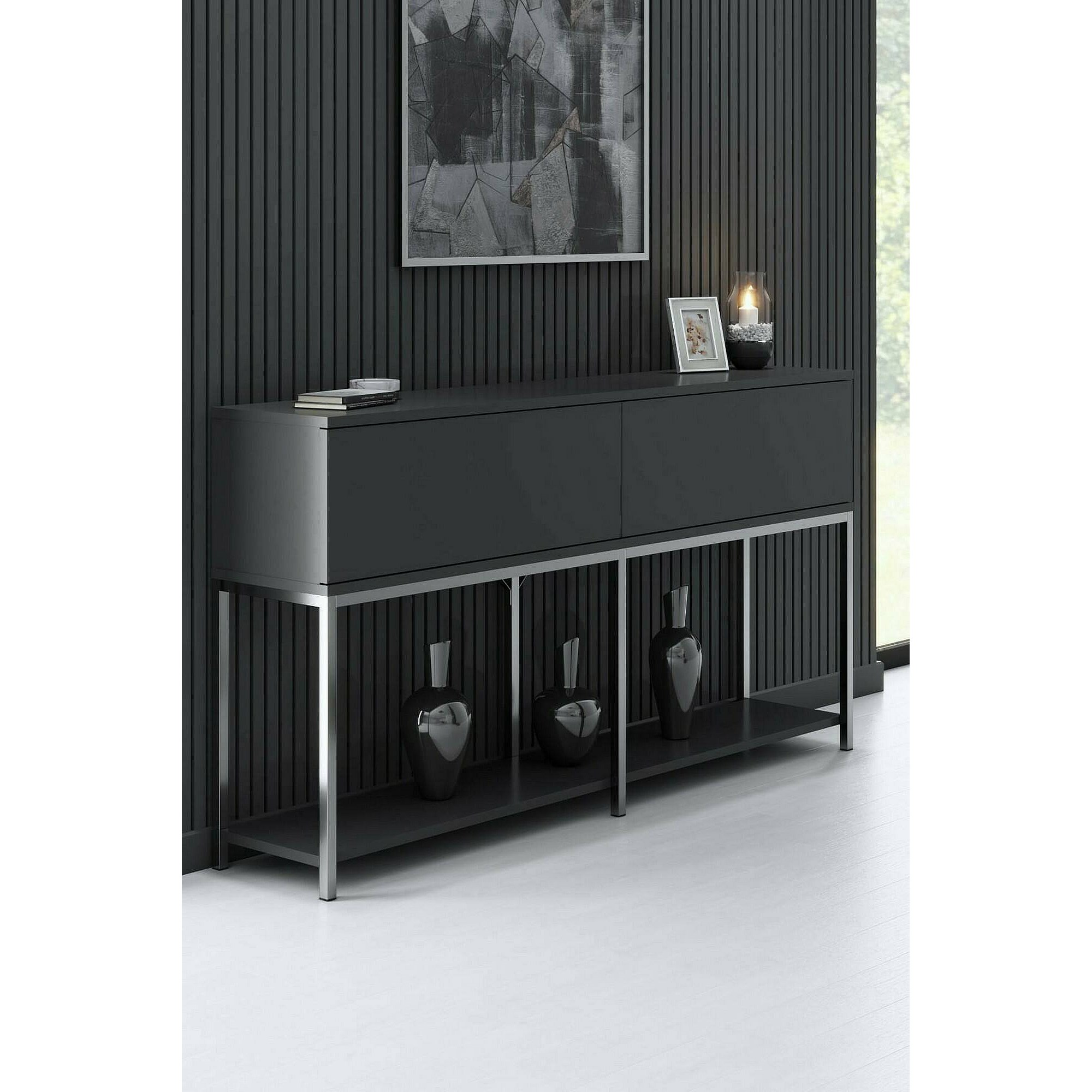 Ddalessi dressoir, Woonkamerbuffet, Woonkamer met 2 deuren en 3 laden, 180x44h86 cm, Antraciet